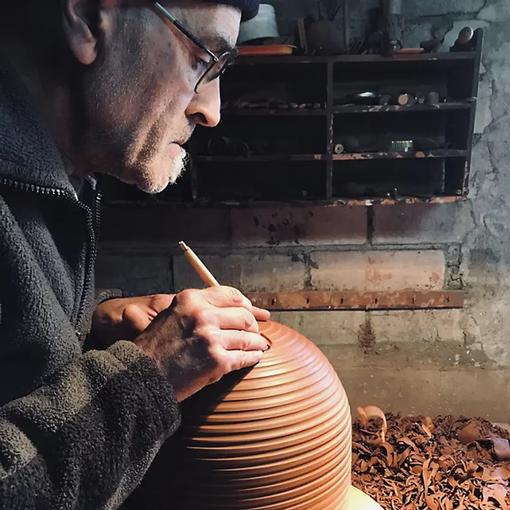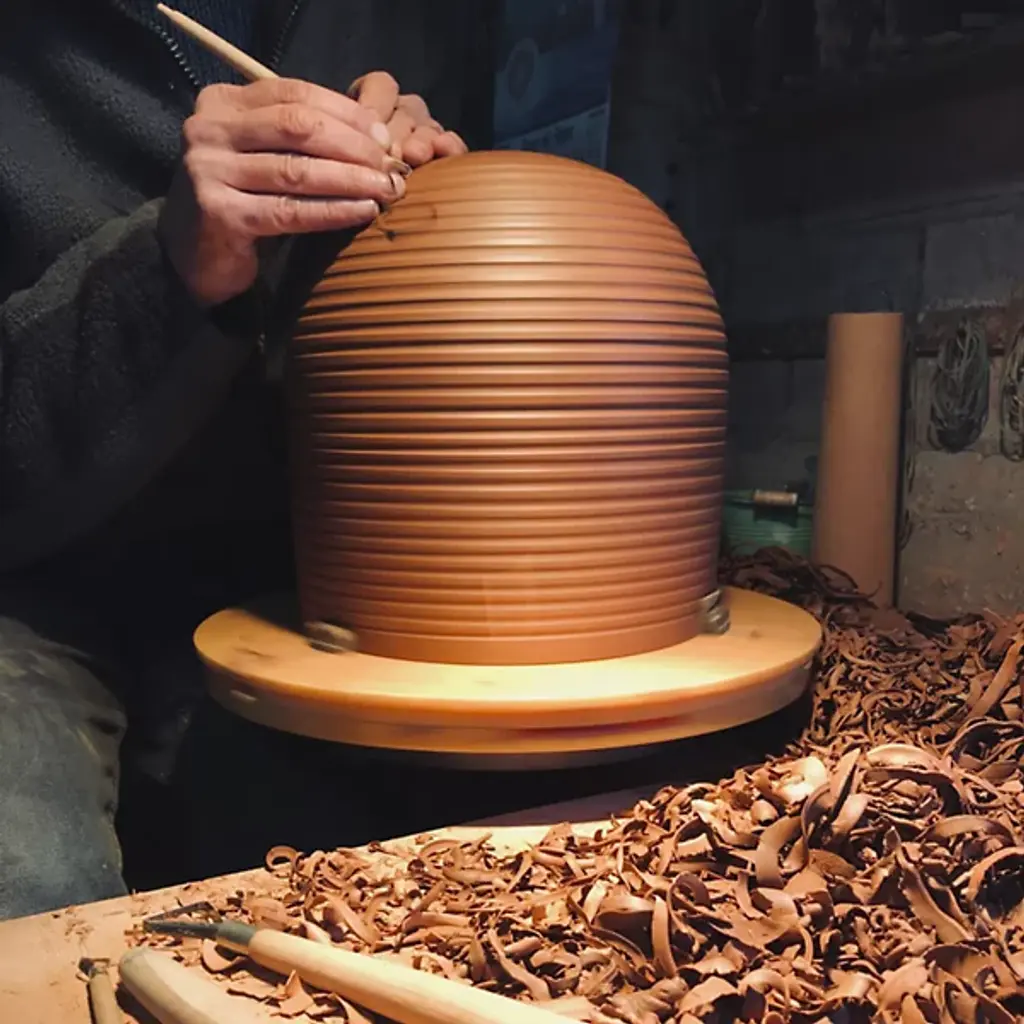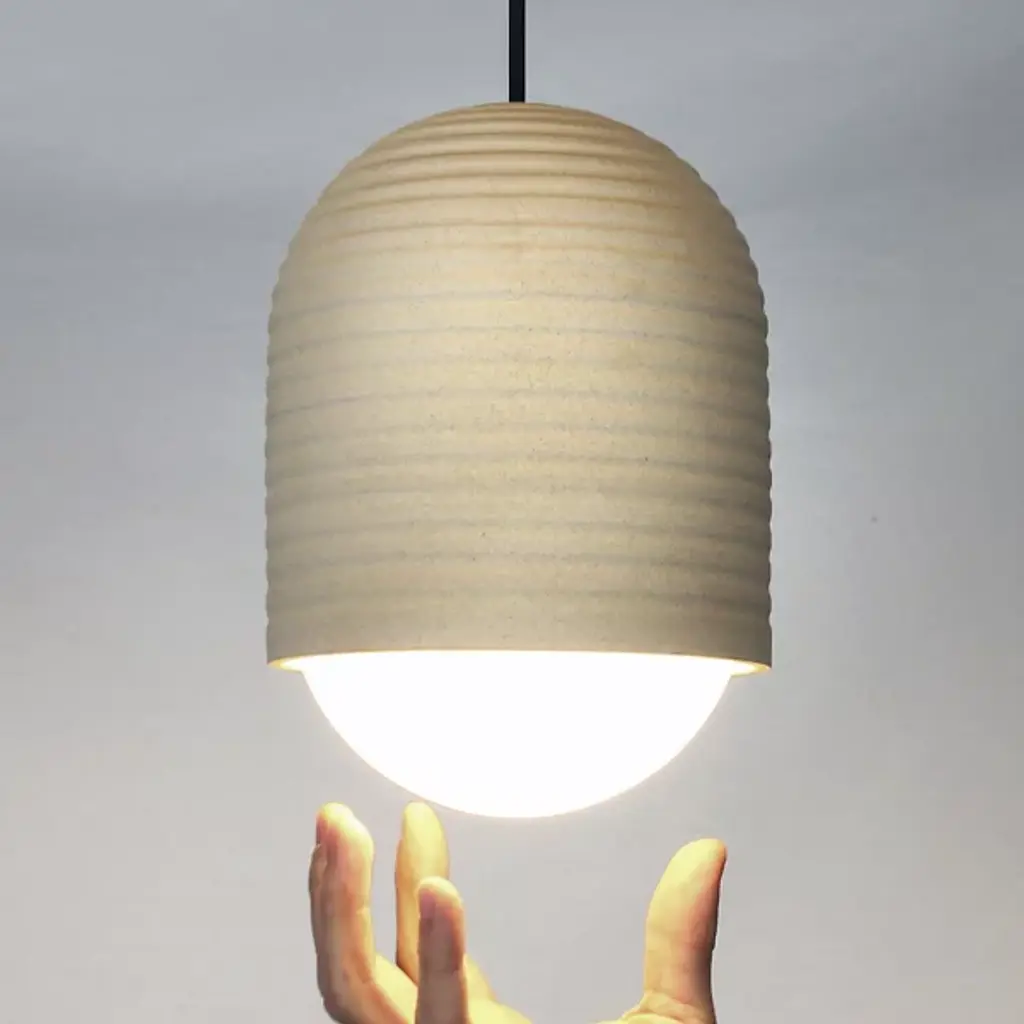 The Nucli Outdoor Mini Pendant from El Torrent adds a clever, contemporary character to indoor and outdoor spaces alike. Designed by Joan Genebat to focus on soulful, simple materials, each fixture features a handmade ceramic dome shade, grooved with horizontal rings to add subtle texture, and places strong lamping into its center. Direct light is mellowed into friendly warmth by a translucent glass shade that arcs across its open base. It creates a transformative contrast with the materials as the vibrant, ceramic light housing appears to float when illuminated, adding a rich, vibrant presence to gathering spaces.