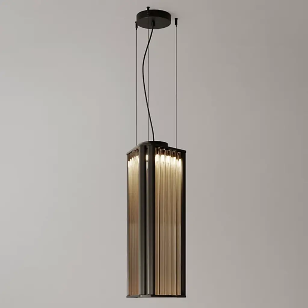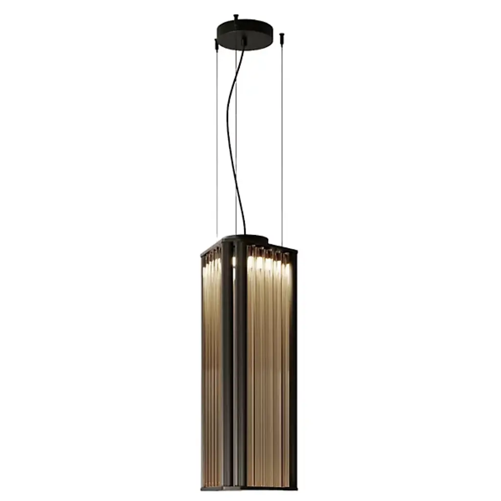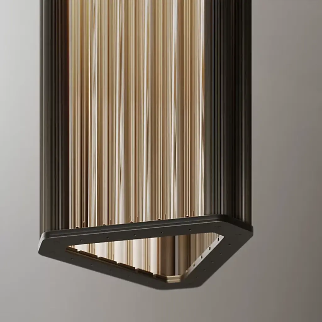 Add artistic intrigue to inside ceilings with the elegant, open lines of the Numa LED Pendant from Venicem. An evocative structure that obtains its inspiration from the classic columnar constructions of ancient architecture, it places vertical glass rods into a triangular brass frame, uniting smooth-surfaced refinement with a touch of glossy glass inside. The parallel rods contrast well with the rounded frame elements, casting a mix of focused downlight accentuated by softened warmth around it.