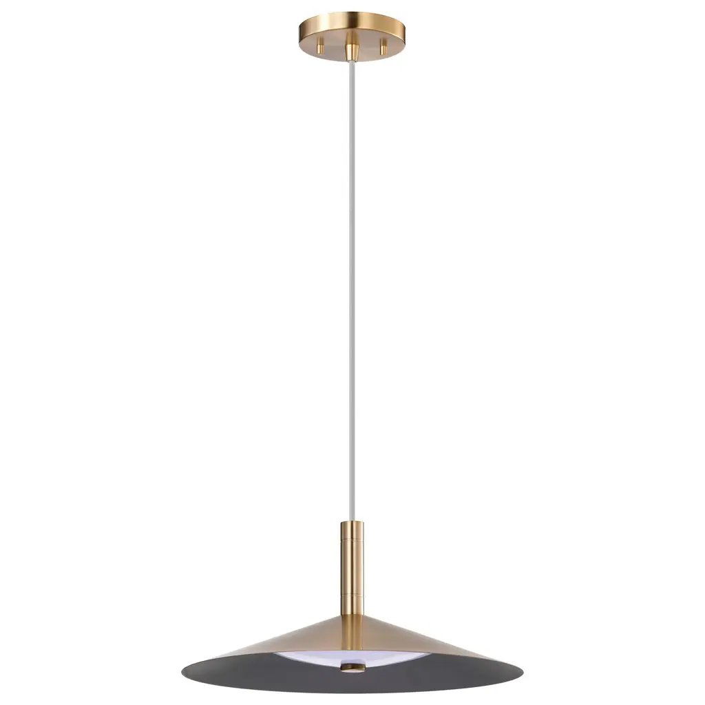 The Corrine 62-2072 LED pendant effortlessly marries style and substance, making it the epitome of understated modern design. Designed to captivate, the integrated LED features three CCT selectable options from warm white to natural light, softly diffusing the light with an acrylic diffuser and a reflector lining the steel shade. Finished with a contrasting braided rayon cord cove, continuing the polished aesthetic, sleek lines and minimalist silhouette making it a versatile addition to any space. Seamlessly blending into various interior styles, Corrine adorns your home as a statement piece that complements your discerning taste.Features:Dimensions:Electrical Specifications: