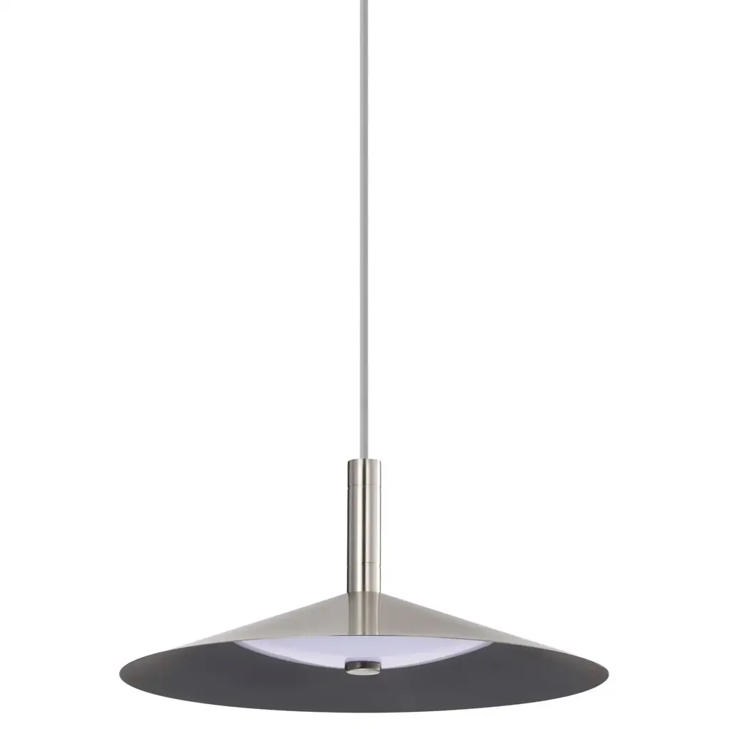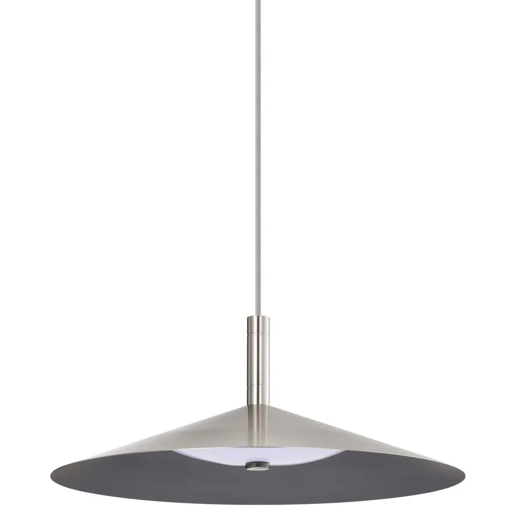 The Corrine 62-2073 LED pendant effortlessly marries style and substance, making it the epitome of understated modern design. Designed to captivate, the integrated LED features three CCT selectable options from warm white to natural light, softly diffusing the light with an acrylic diffuser and a reflector lining the steel shade. Finished with a contrasting braided rayon cord cove, continuing the polished aesthetic, sleek lines and minimalist silhouette making it a versatile addition to any space. Seamlessly blending into various interior styles, Corrine adorns your home as a statement piece that complements your discerning taste.Features:Dimensions:Electrical Specifications: