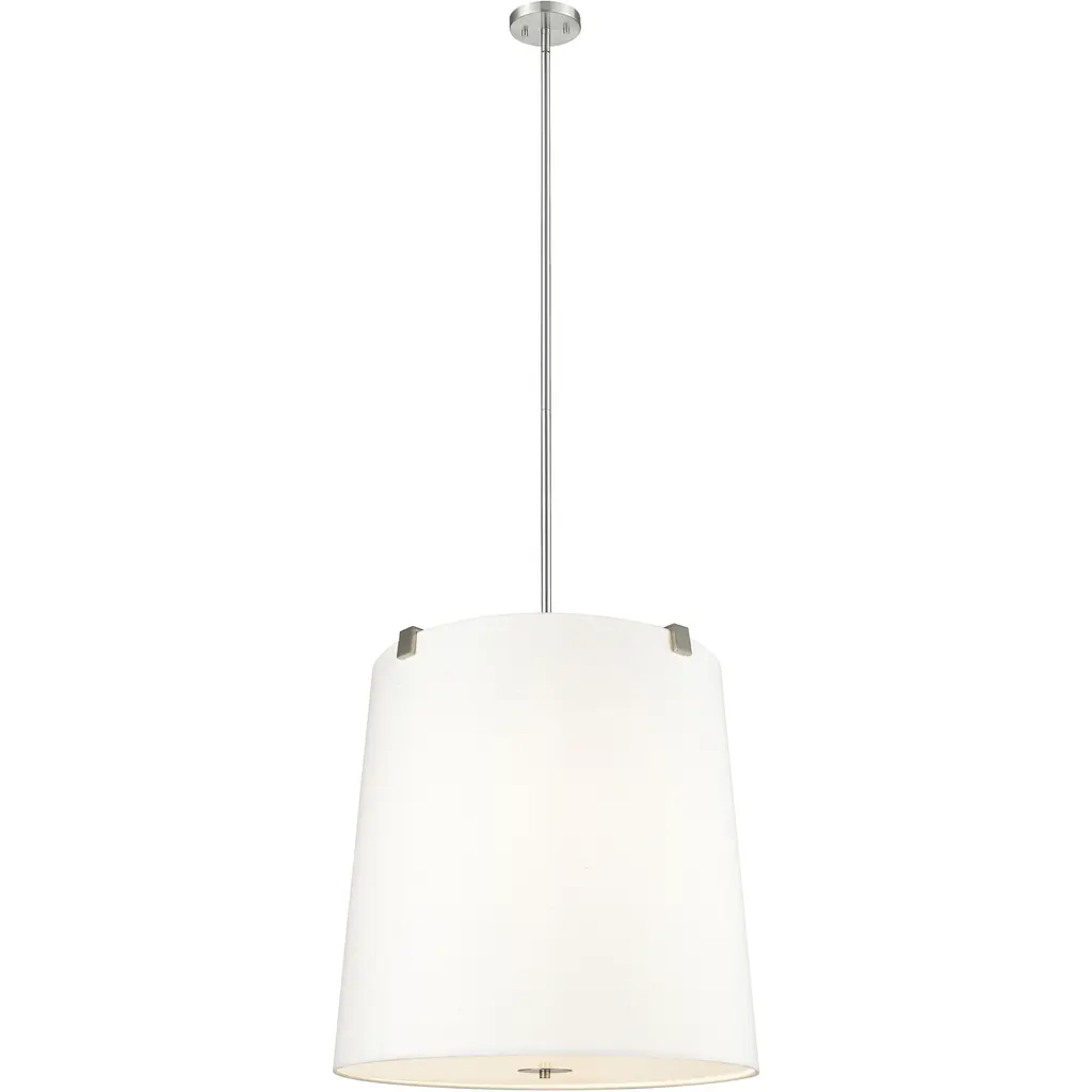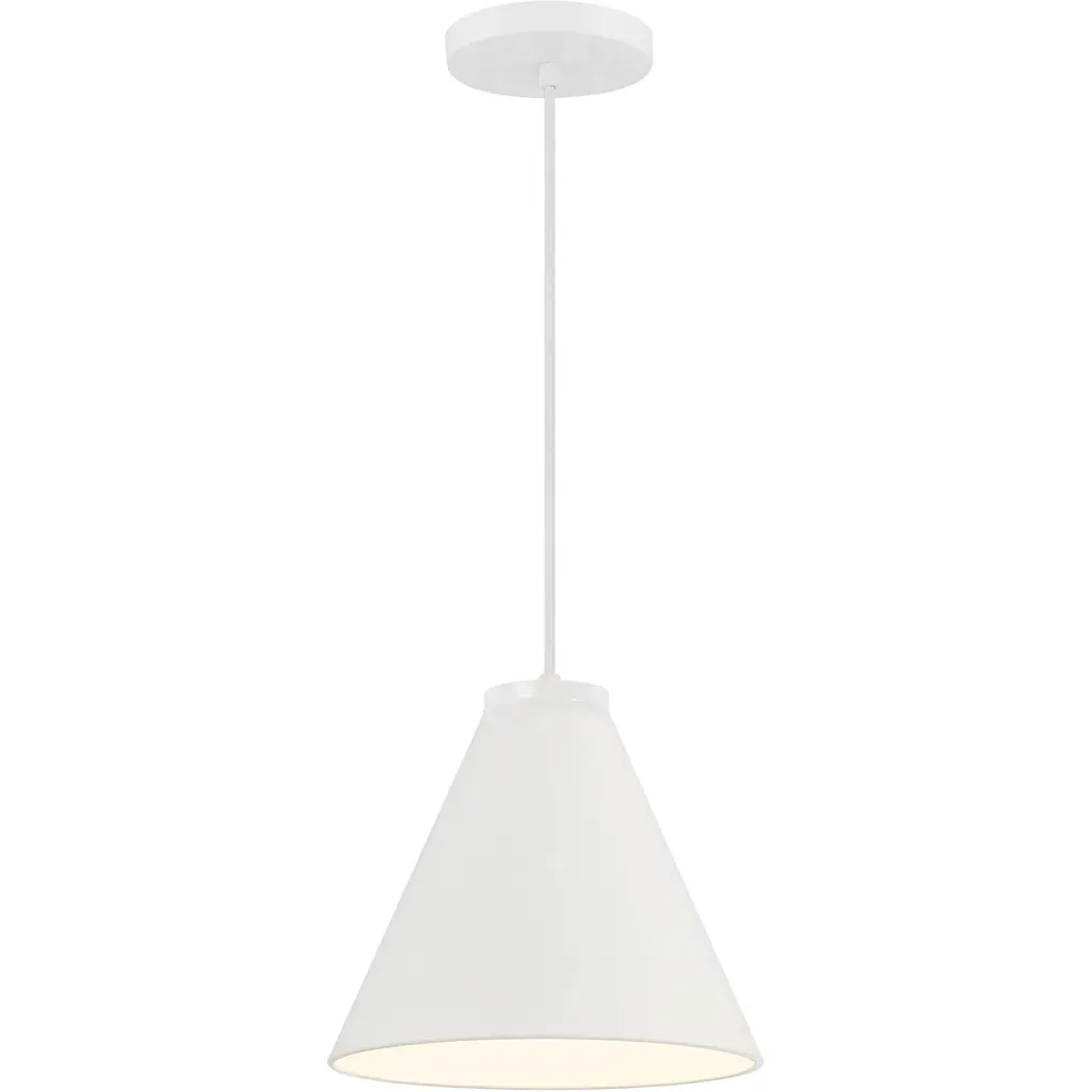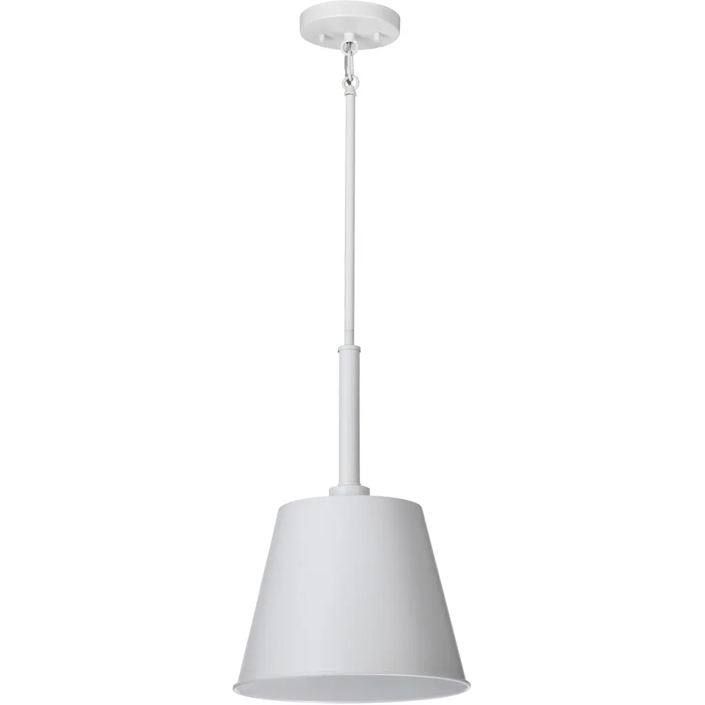 Collection: Alexis, Material: Steel, Finish Color: Matte White, Width: 15", Height: 20.75", Length: 15", Hanging Method: Stem, Lamping Type: Incandescent, Number Of Bulbs: 1, Wattage: 100 Watts, Dimmable: Yes, Moisture Rating: Dry Rated, Desc: The Alexis 60-7938 large pendant showcases a stylish and understated lighting solution for today's home. The burnished brass finish is sophisticated and modern on the canopy, rod, and matching metal shade, unifying the overall artistic vision of the design. Bring a tired entryway into the 21st century, create a row of unique lighting in an office or work study, or provide additional task lighting over a kitchen island. The focus on essential elements like style, design, and finish, all come together to create a sleek and uncluttered appearance. Alexis beautifully integrates into various decors and lighting solutions. Accepts one 100 watt medium base or LED equivalent / Dimensions: 20.75 in H x 15 in W / Contemporary style that is sophisticated