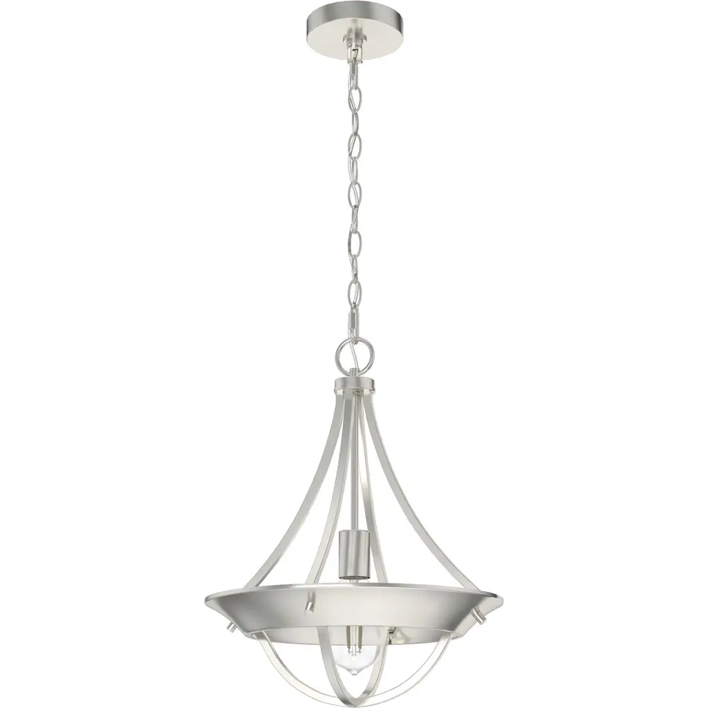 Collection: Ginger, Material: Glass, Finish Color: Brushed Nickel, Width: 16", Height: 17", Chain Length: 48", Number Of Bulbs: 3, Wattage: 100 Watts, Dimmable: No, Moisture Rating: Dry Rated Desc: Shade Included: TRUE / Warranty: One Year. , Material: Glass, Finish Color: Brushed Nickel, Width: 16", Height: 17", Chain Length: 48", Number Of Bulbs: 3, Wattage: 100 Watts, Dimmable: No, Moisture Rating: Dry Rated