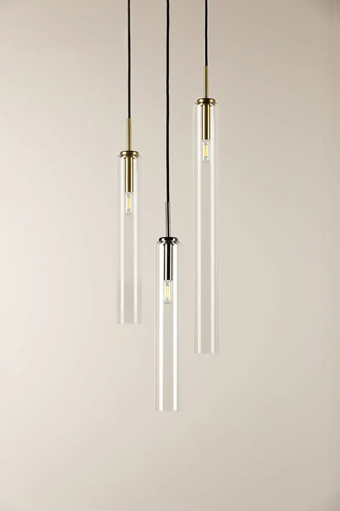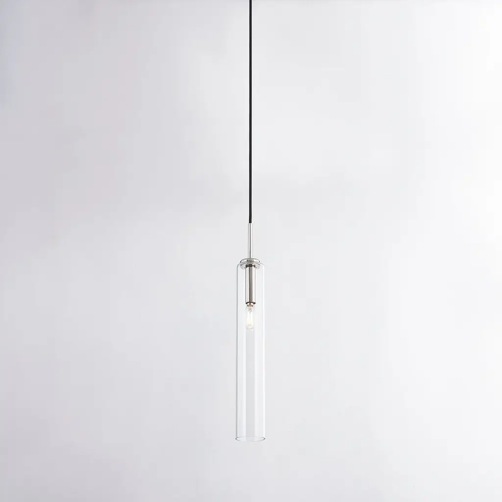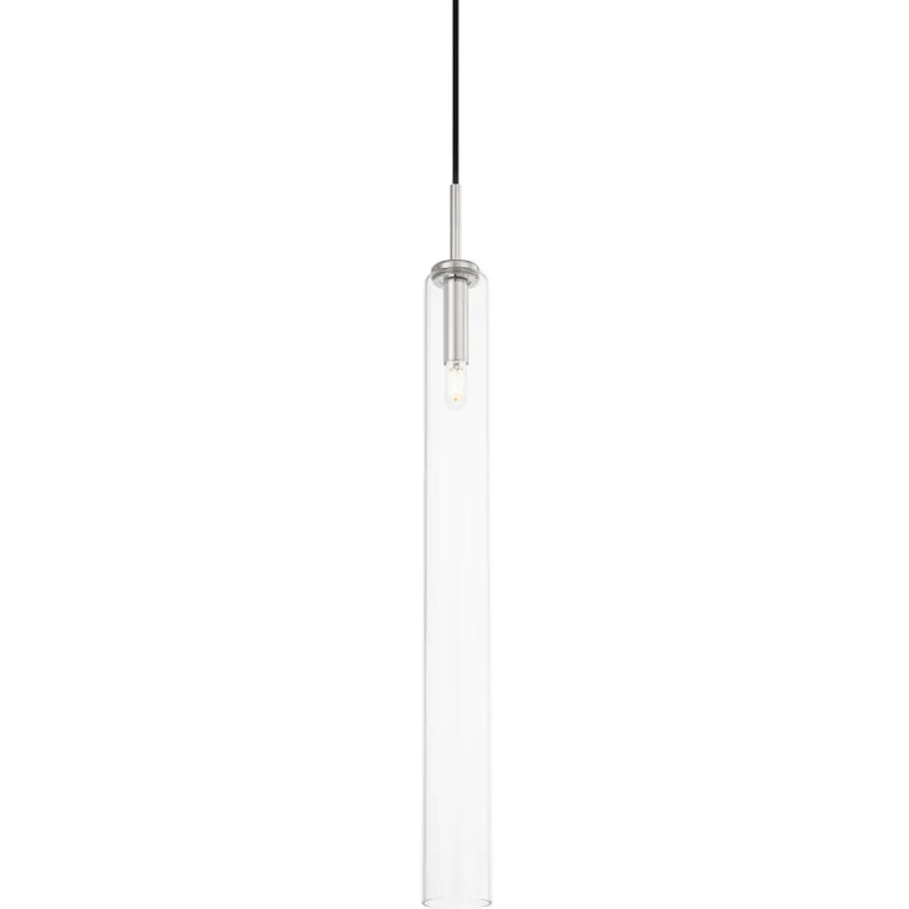 Streamlined in style, the Nyah Pendant delivers elevated proportions with an oversized glass shade. The aged bass socket is the perfect metallic accent, shining subtly in the tubular shade. Also available in a smaller size.