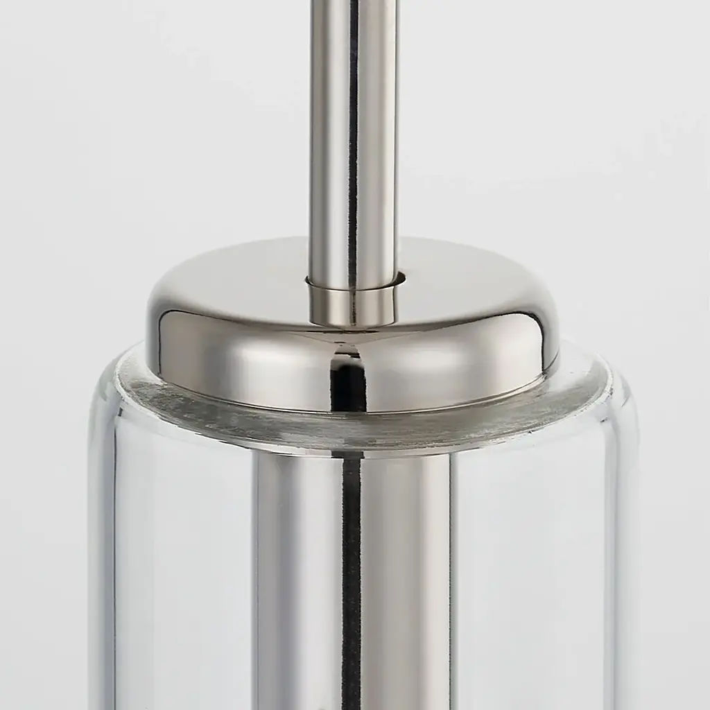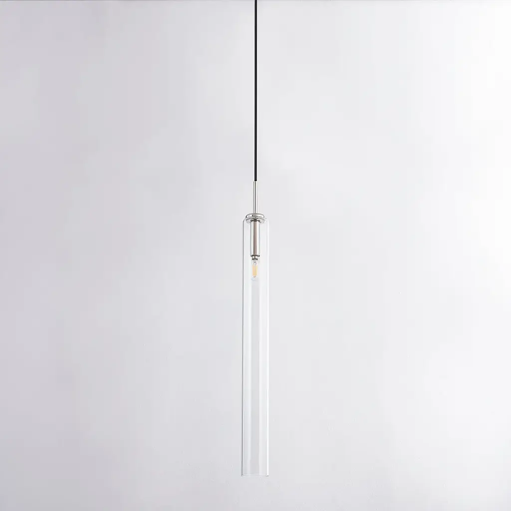 Streamlined in style, the Nyah Pendant delivers elevated proportions with an oversized glass shade. The aged bass socket is the perfect metallic accent, shining subtly in the tubular shade. Also available in a smaller size.