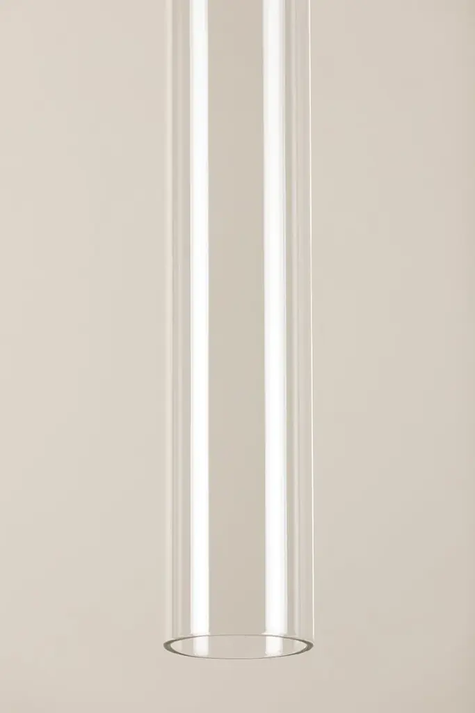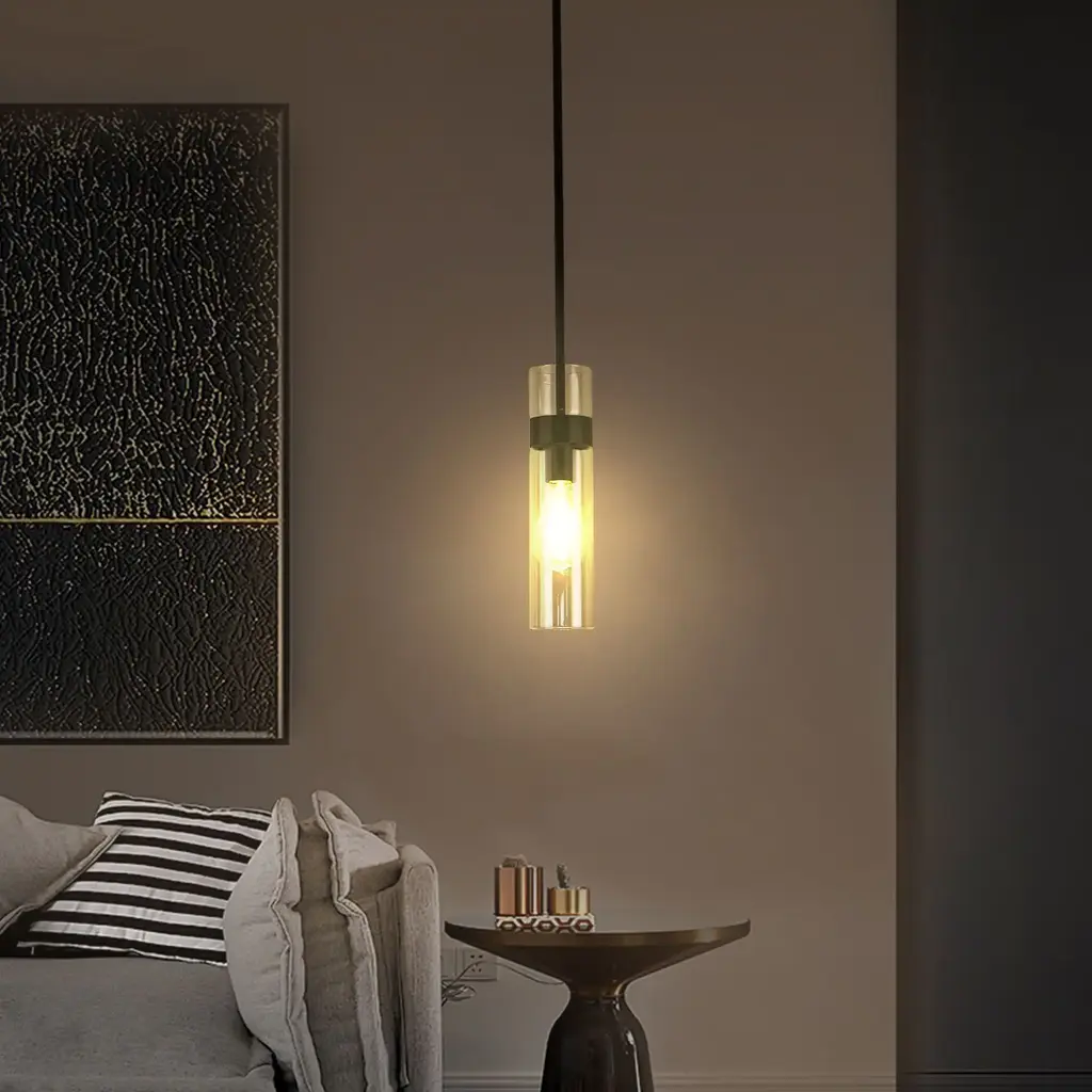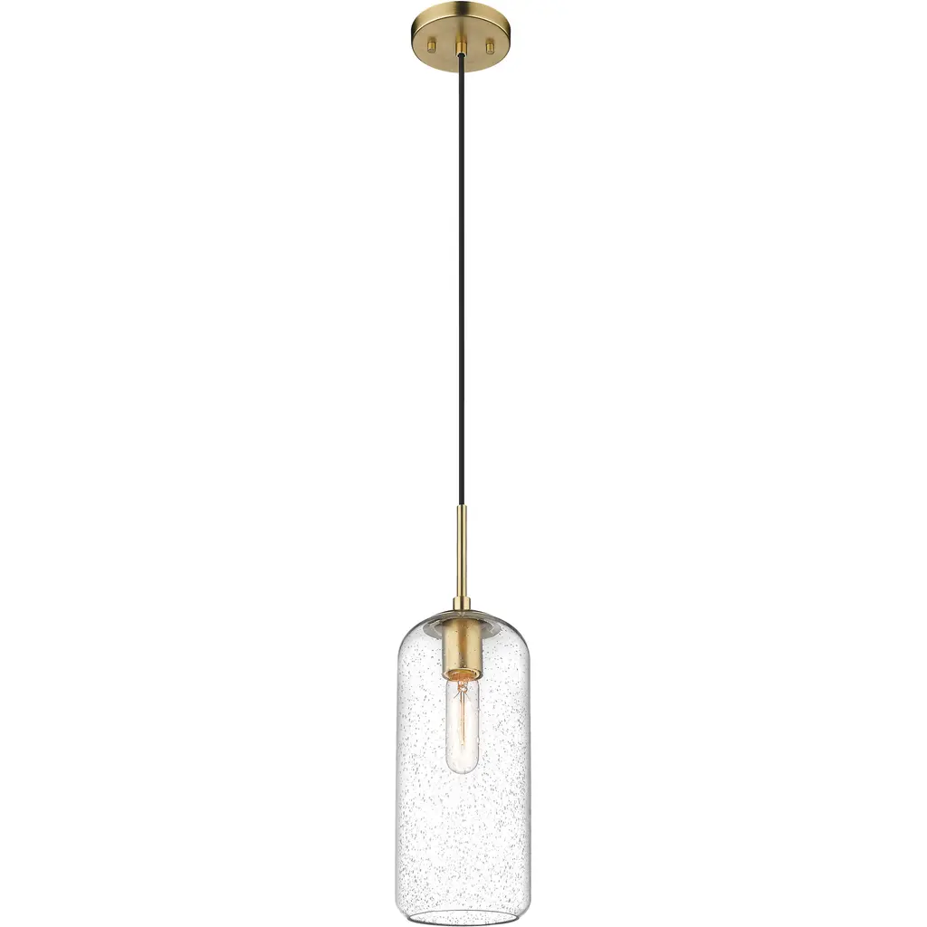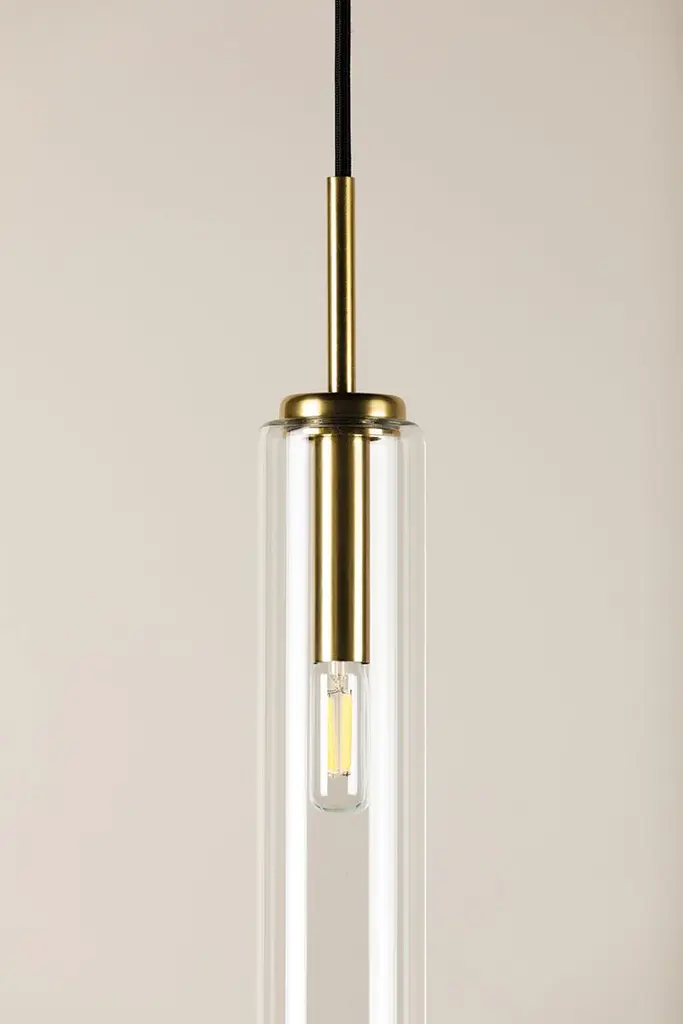 Streamlined in style, the Nyah Pendant delivers elevated proportions with an oversized glass shade. The aged bass socket is the perfect metallic accent, shining subtly in the tubular shade. Also available in a smaller size.