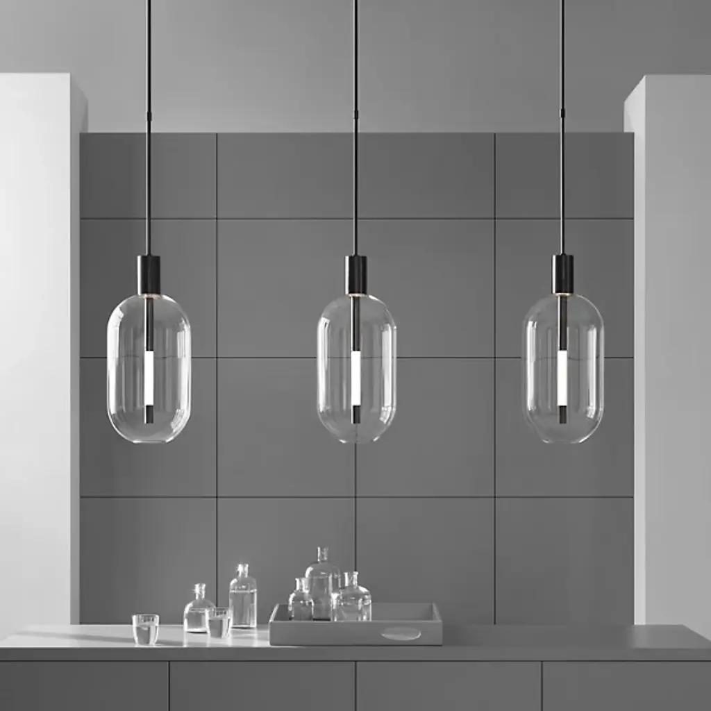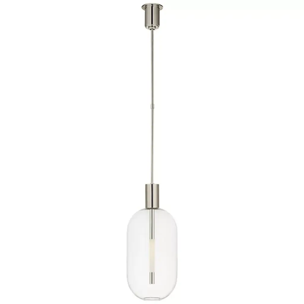 Contemporary with mid-century charm, the Nye LED Pendant by Visual Comfort Signature, formerly known as Visual Comfort, brings character to any modern space. Descending from a slender downrod, a capsule-shaped pendant constructed from hand-blown clear glass forms the fixture’s shade. Inside, a cylindrical rod contains an integrated LED light module that emits a soft layer of light throughout its space. Ideal for adding a minimal and modern accent without sacrificing character, this pendant complements a variety of décor themes in the home.