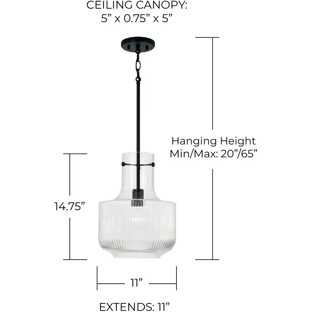 Nyla 1 Light 11 Inch Matte Black Pendant Ceiling Light