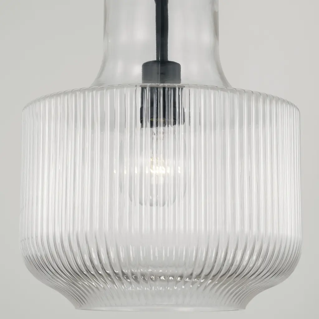 Fluted glass and a tulip silhouette create organic intrigue with the Nyla Pendant. The timeless tone of the Matte Black finish reflects a sleek and stunning style.