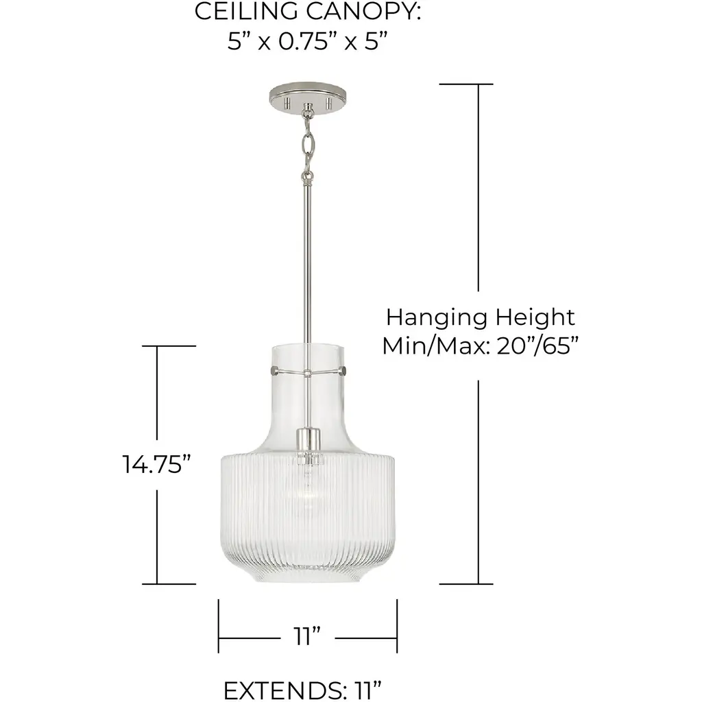 Nyla 1 Light 11 Inch Polished Nickel Pendant Ceiling Light
