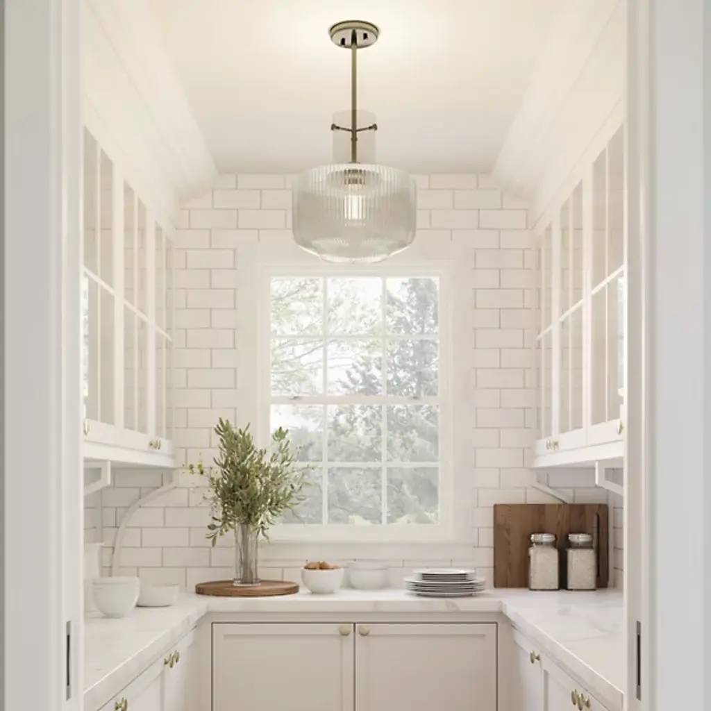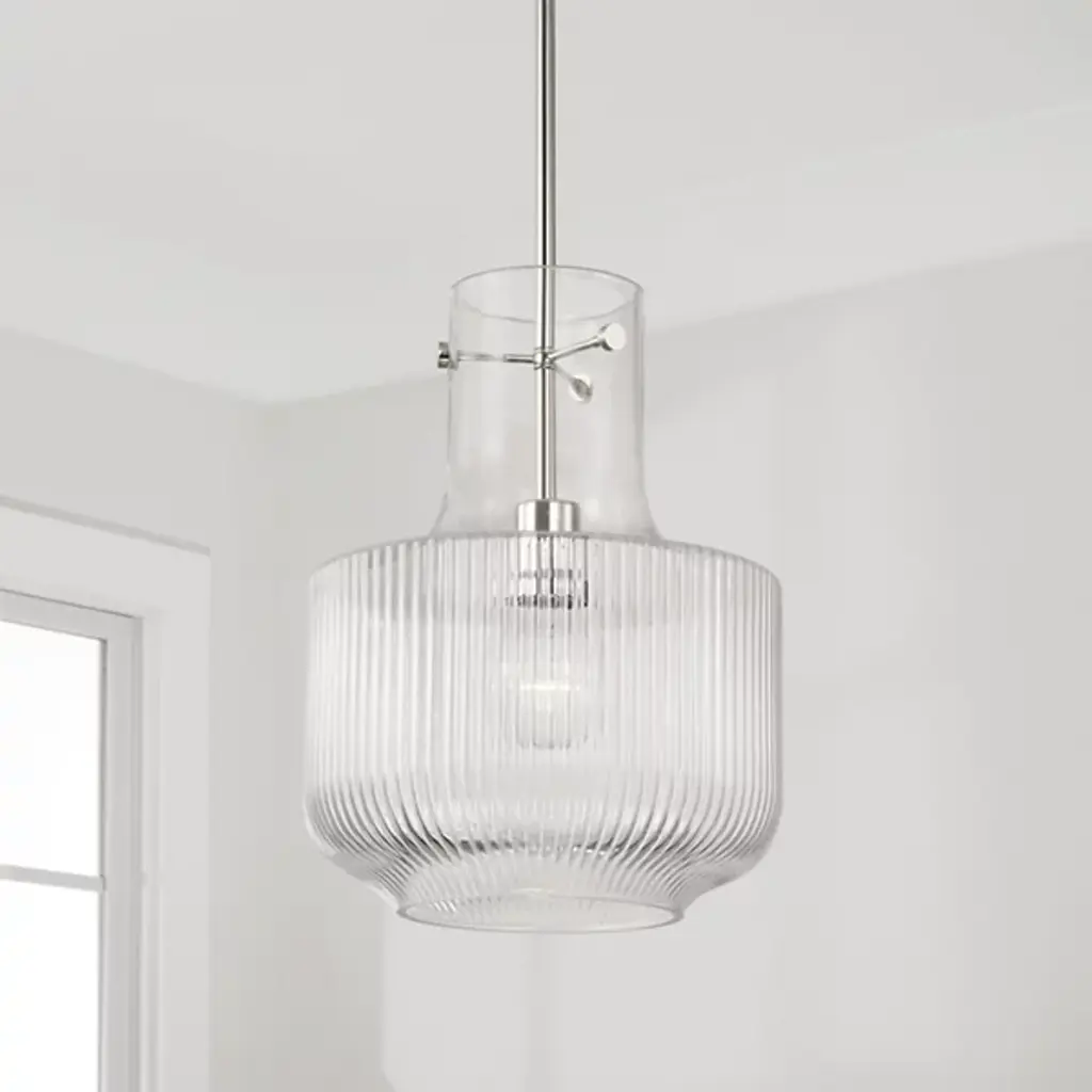 Give your home a feeling of sophistication with the Nyla Pendant by Capital Lighting. A metallic downrod extends from a disc-shaped canopy at your ceiling to facilitate a halogen bulb’s suspension in midair. This bulb is surrounded by fluted glass that takes on a tulip-like shape. From behind the glass, brilliant light splays throughout your indoor setting. The brightness level of the light produced is easily adjusted when you pair the Nyla Pendant with a standard dimmer.