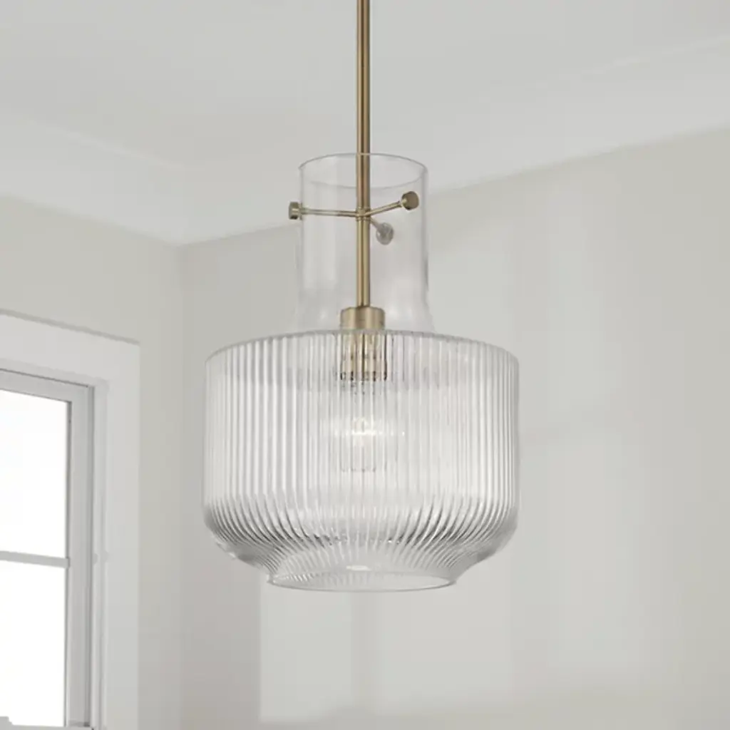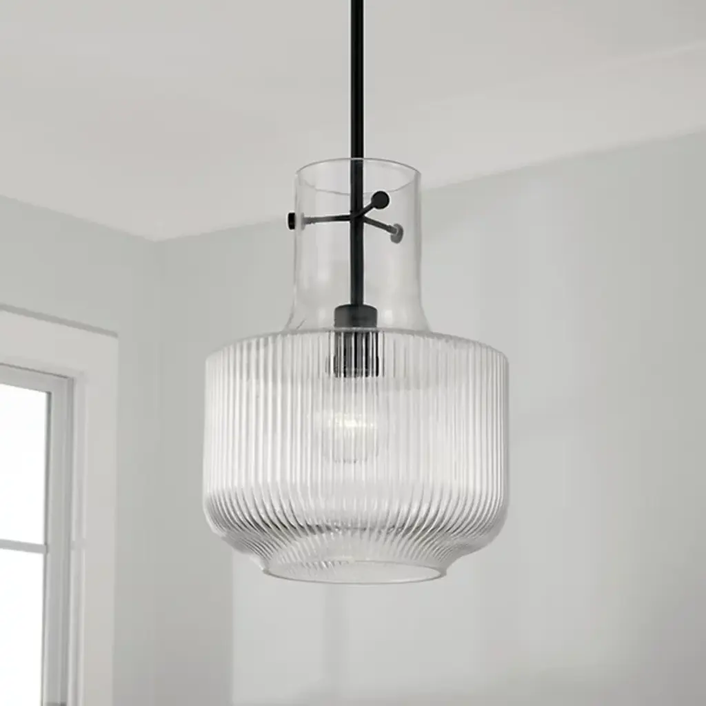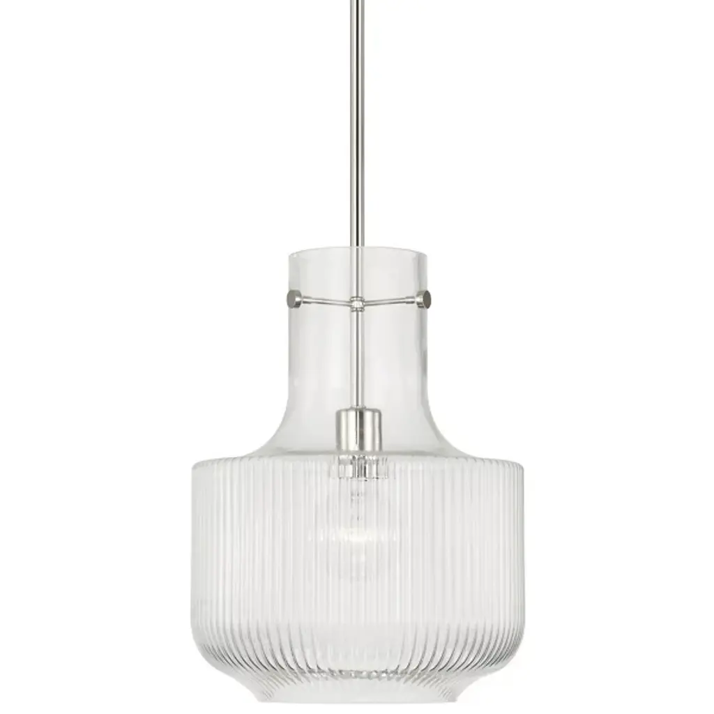 Give your home a feeling of sophistication with the Nyla Pendant by Capital Lighting. A metallic downrod extends from a disc-shaped canopy at your ceiling to facilitate a halogen bulb’s suspension in midair. This bulb is surrounded by fluted glass that takes on a tulip-like shape. From behind the glass, brilliant light splays throughout your indoor setting. The brightness level of the light produced is easily adjusted when you pair the Nyla Pendant with a standard dimmer.