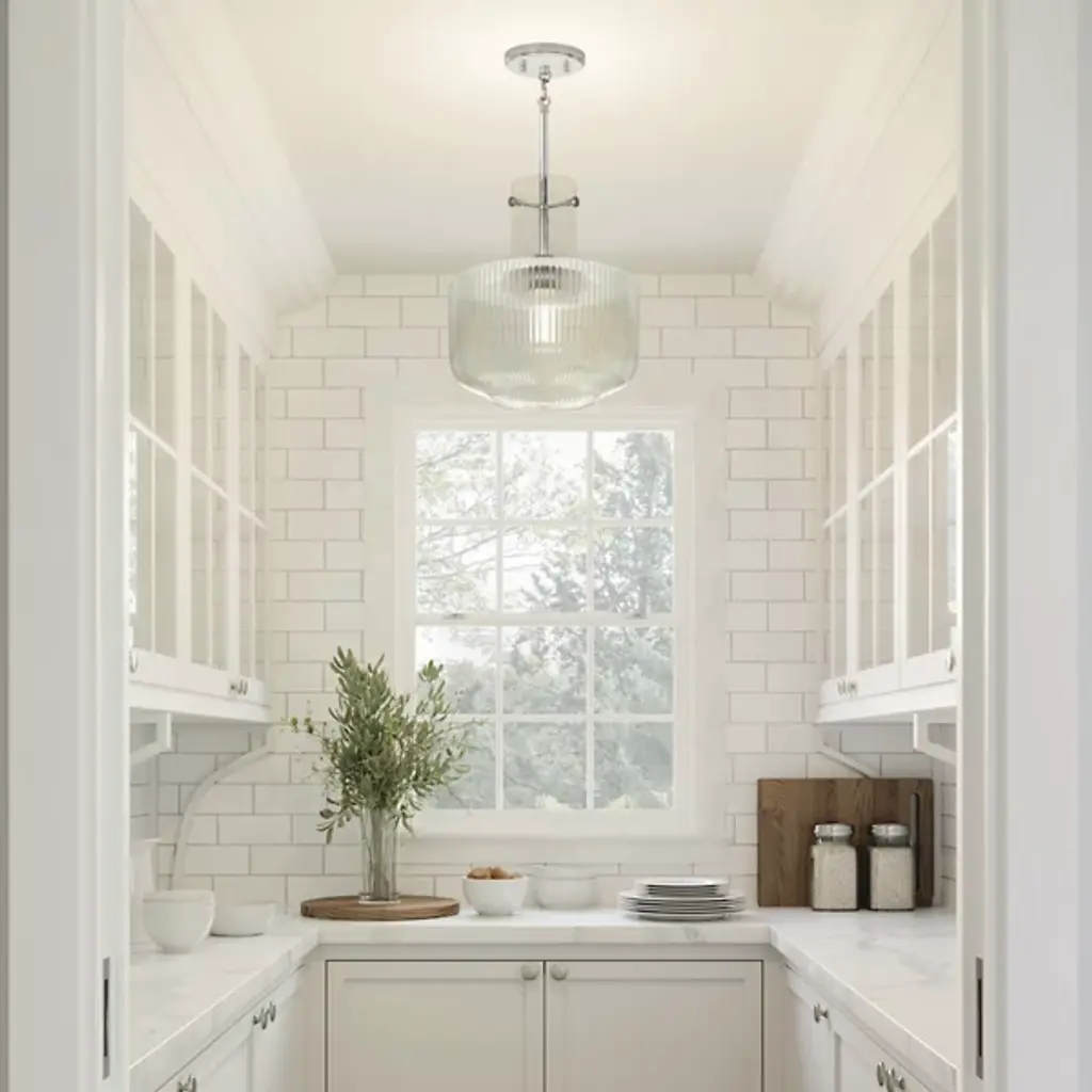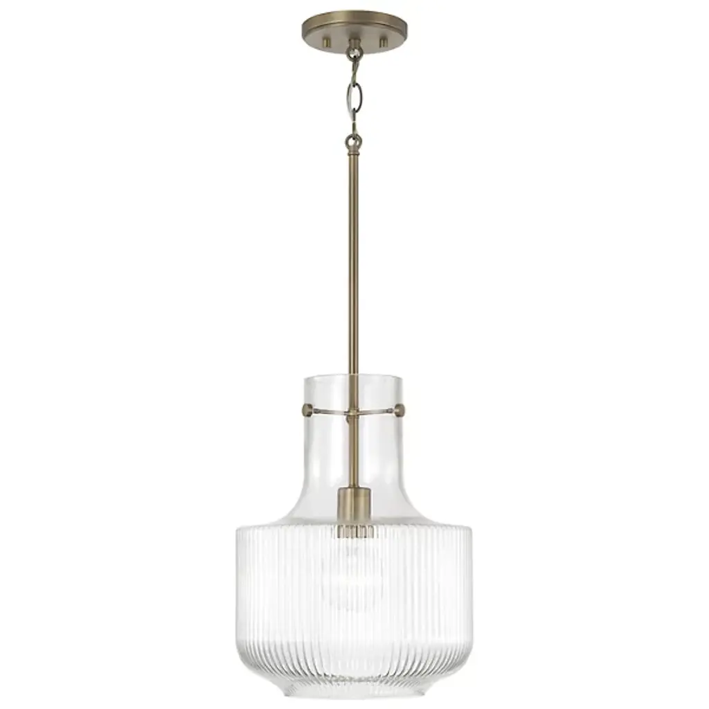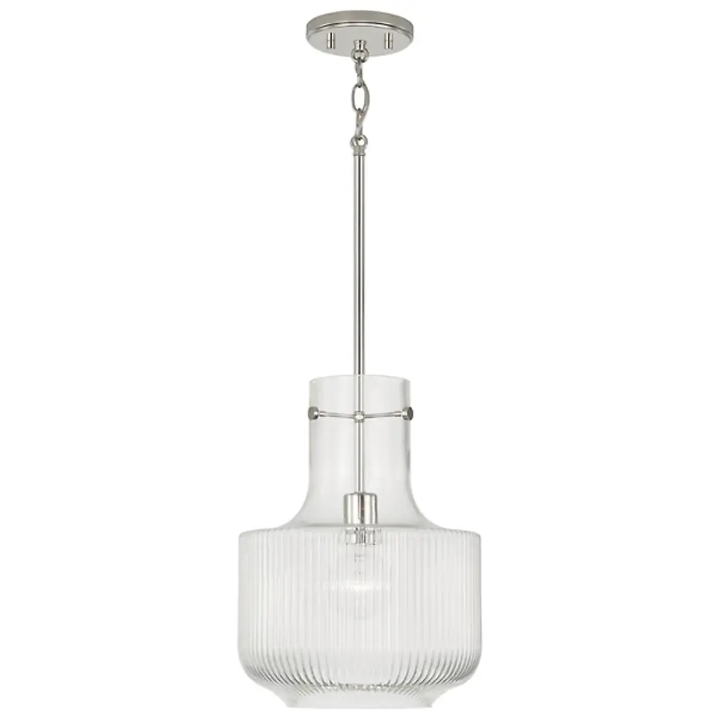 Give your home a feeling of sophistication with the Nyla Pendant by Capital Lighting. A metallic downrod extends from a disc-shaped canopy at your ceiling to facilitate a halogen bulb’s suspension in midair. This bulb is surrounded by fluted glass that takes on a tulip-like shape. From behind the glass, brilliant light splays throughout your indoor setting. The brightness level of the light produced is easily adjusted when you pair the Nyla Pendant with a standard dimmer.