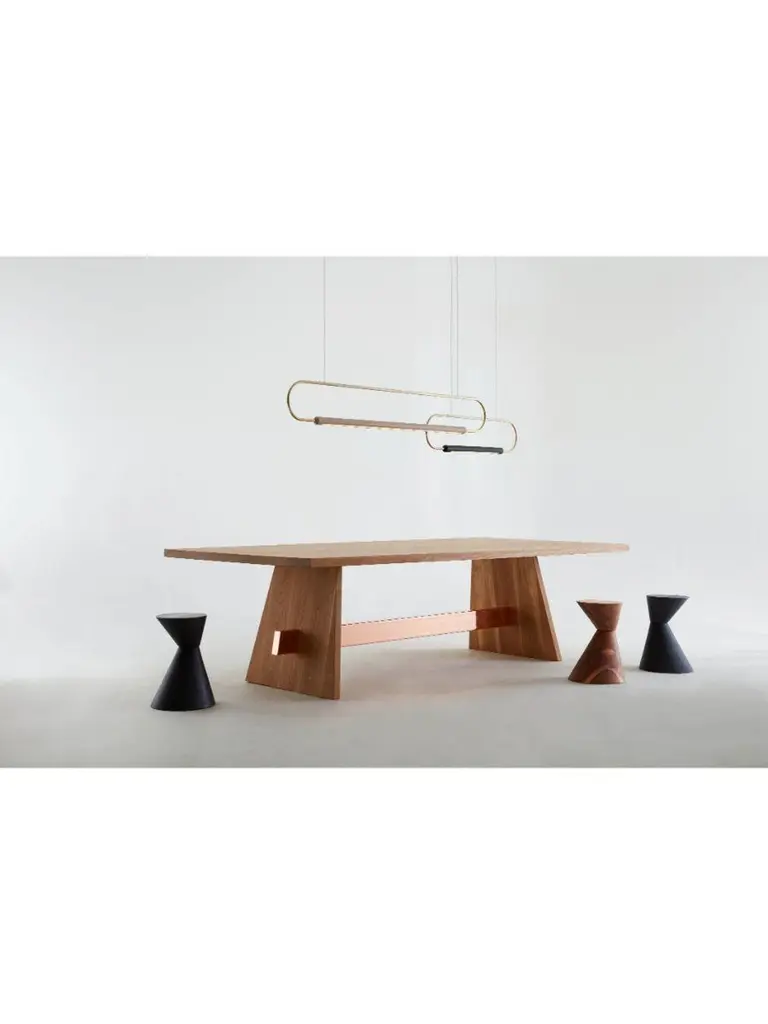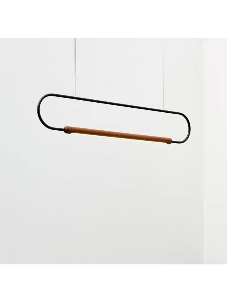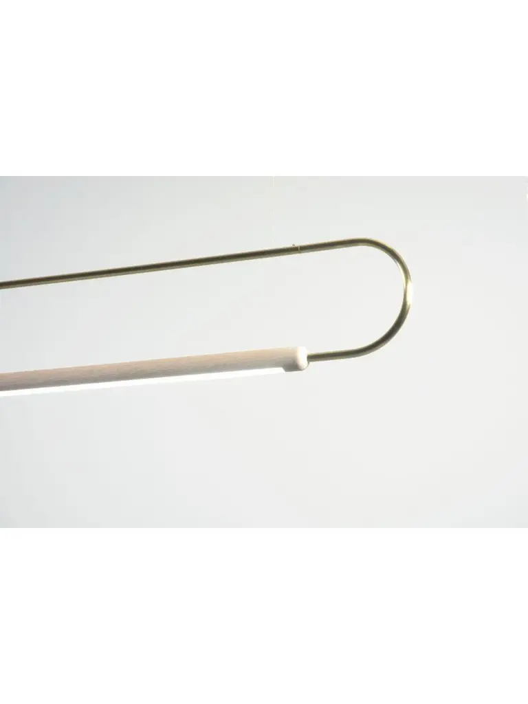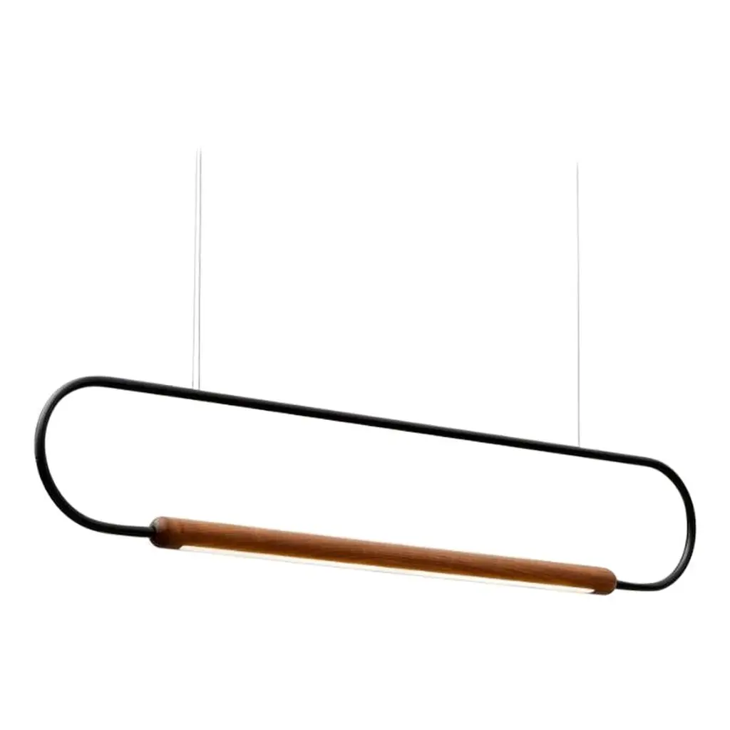 Oak medium horizontal link pendant by Hollis & MorrisDimensions: 5ft x 63" x diameter 9"Materials: Solid wood, Bent Steel. Hardwax Oil. LED lights, powder-coated metal, or brushed metal finish. Suspension Hardware.Also available in natural oak, black oak, white oak, and walnut, black, white, or brushed metal powder-coated finish. Available in other sizes. All our lamps can be wired according to each country. If sold to the USA it will be wired for the USA for instance.Inspired by the purity and strength of nautical hardware, Link abstracts a sailboat shackle into a graphic suspension light. Curved metal and rounded wood come together in this versatile loop that can be specified in either a horizontal or vertical orientation.Based out of Toronto, Hollis & Morris takes its name from an intersection in Halifax where the company started as a series of garage explorations in design. A steadfast commitment to function with a distinctive approach to design. Hollis & Morris creates handmade furniture and lighting which carefully balances modern and honest designs. Versatile, well crafted, and timeless. Pieces by Hollis & Morris easily complement residential, commercial, and hospitality spaces. Driven by respect towards natural and honest processes, trademark integrations of solid wood and metal celebrate the inherent strengths of each material, resulting in thoughtful, quality pieces made to last with you throughout the years.