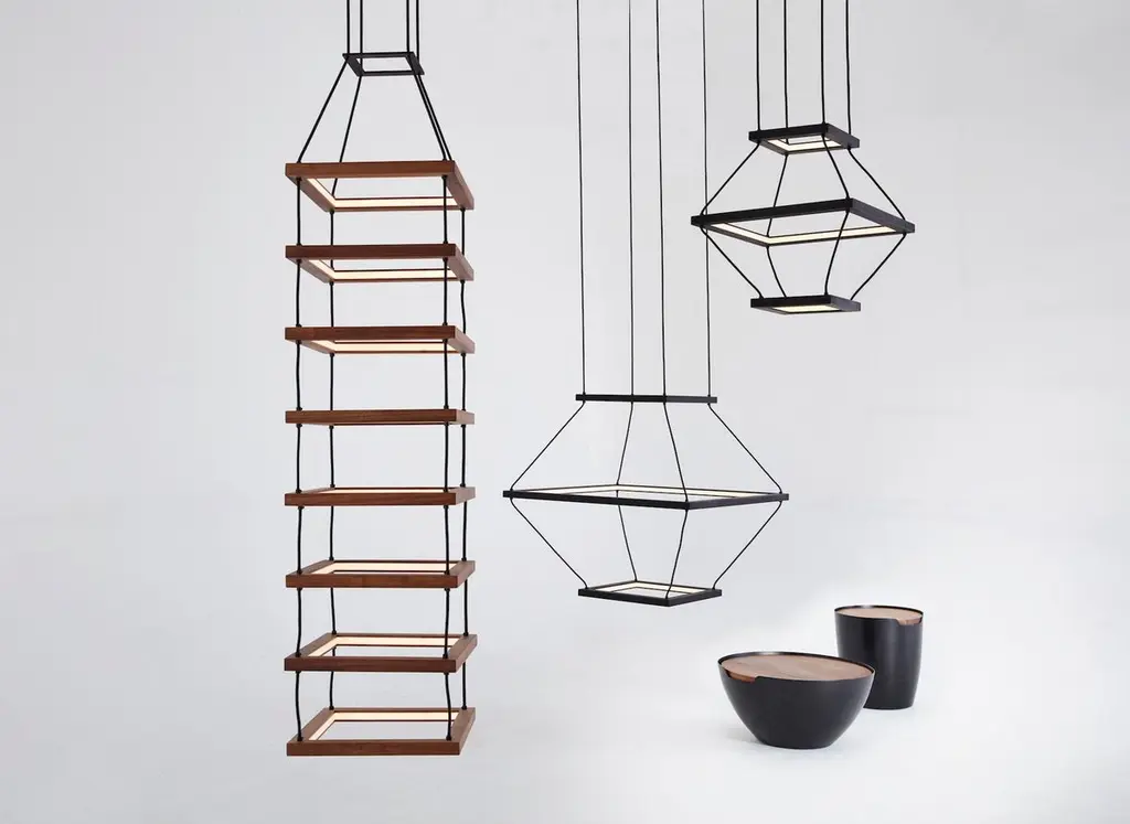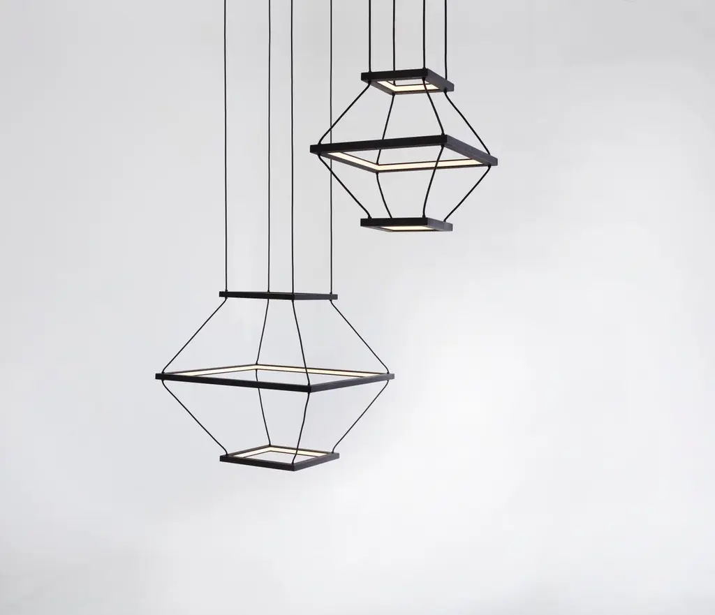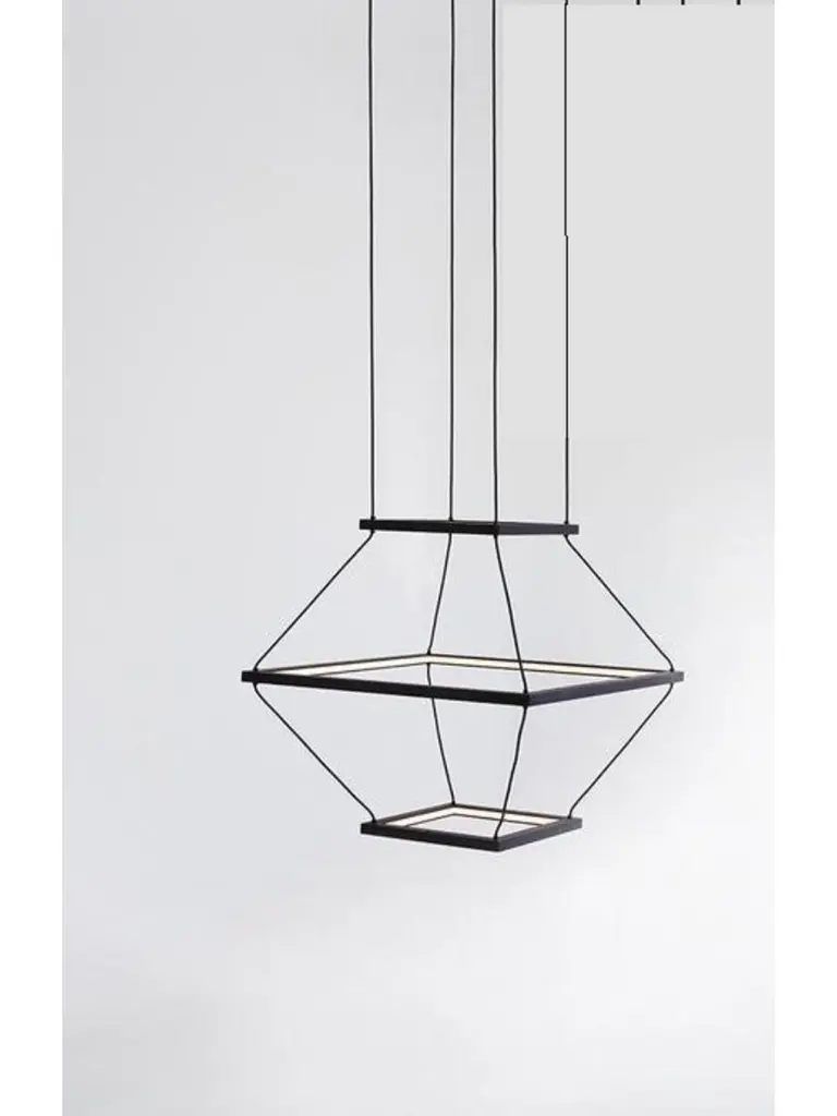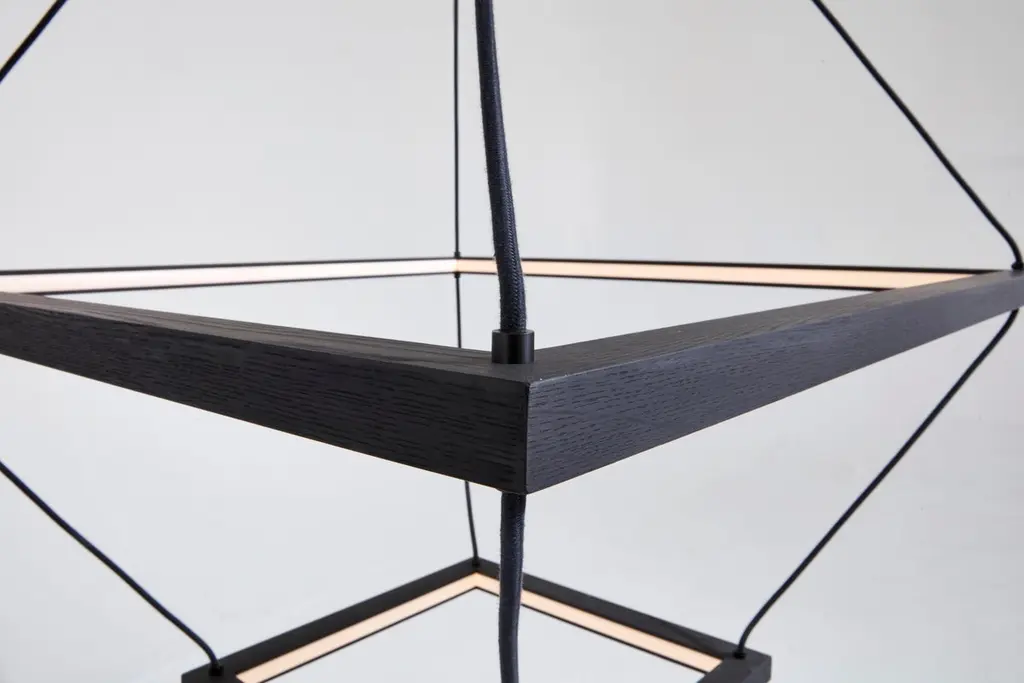 Oak small lantern pendant by Hollis & MorrisDimensions: 21" x 21" x 21"Materials: Solid wood, Hardwax Oil. LED lights. Suspension Hardware. Also available in natural oak, black oak, white oak, and walnut. All our lamps can be wired according to each country. If sold to the USA it will be wired for the USA for instance.A trio of square frames harnessed into a dramatic three-dimensional form. Handmade from solid wood and connected by a soft waxed canvas cord, Lantern is a contemporary gesture toward the glowing beacon that guides us through the dark.Based out of Toronto, Hollis & Morris takes its name from an intersection in Halifax where the company started as a series of garage explorations in design. A steadfast commitment to function with a distinctive approach to design. Hollis & Morris creates handmade furniture and lighting which carefully balances modern and honest designs. Versatile, well crafted, and timeless. Pieces by Hollis & Morris easily complement residential, commercial, and hospitality spaces. Driven by respect towards natural and honest processes, trademark integrations of solid wood and metal celebrate the inherent strengths of each material, resulting in thoughtful, quality pieces made to last with you throughout the years.
