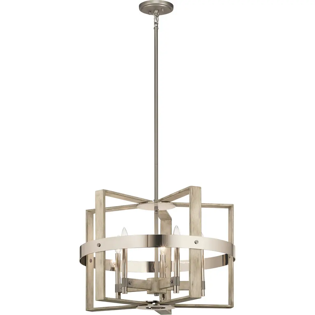 Oana 6 Light 15 Inch White Washed Wood Chandelier Oval Pendant Ceiling Light