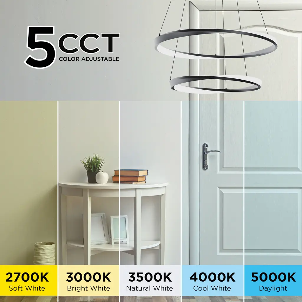 Enhance your living room or dining area with the stylish Oberon pendant. This contemporary piece features a double ring design, offering a modern chandelier feel that adds a sophisticated touch to any space. With integrated lighting, it provides an efficient 80W illumination, making it a standout overhead accent for your home decor.