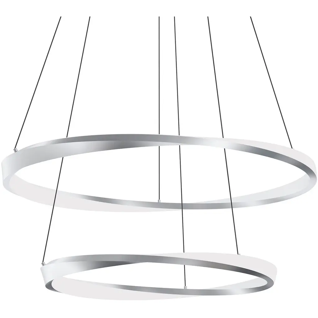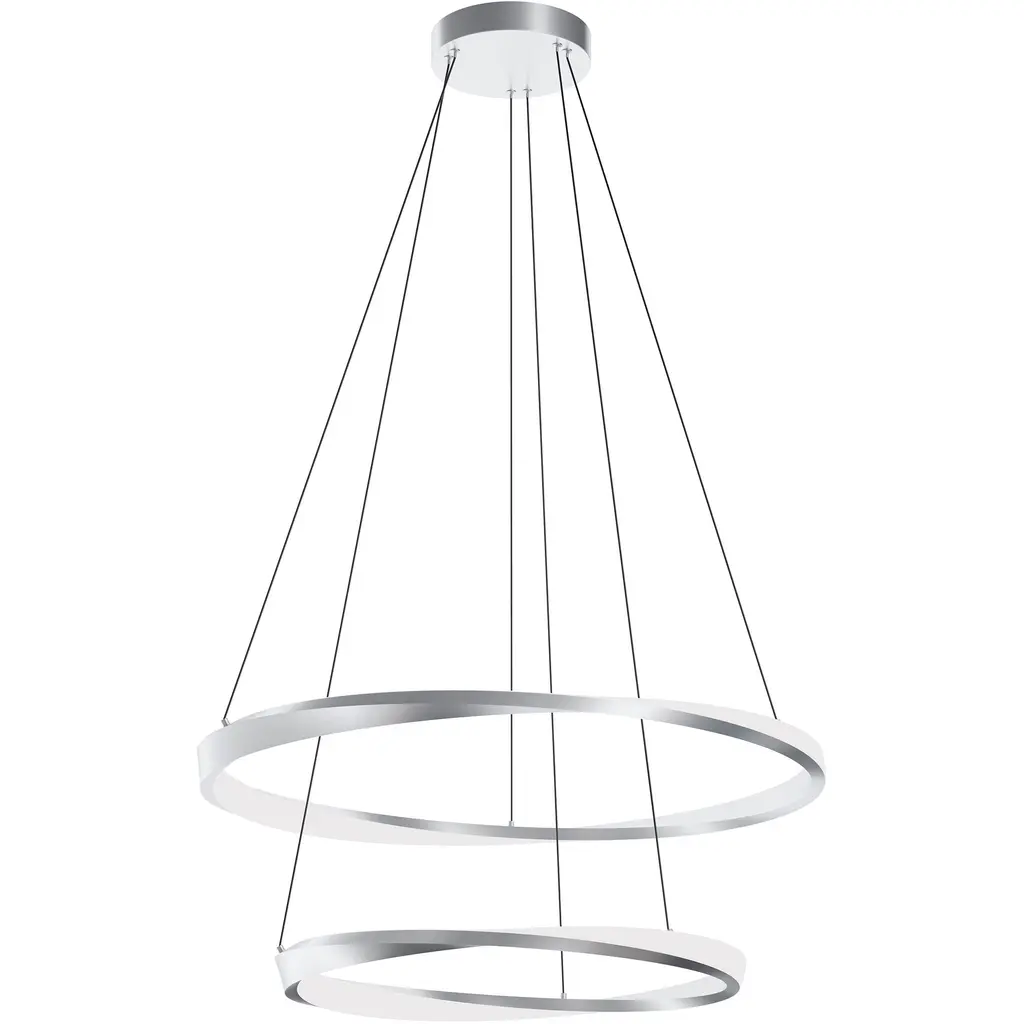 Enhance your living room or dining area with the stylish Oberon pendant. This contemporary piece features a double ring design, offering a modern chandelier feel that adds a sophisticated touch to any space. With integrated lighting, it provides an efficient 80W illumination, making it a standout overhead accent for your home decor.