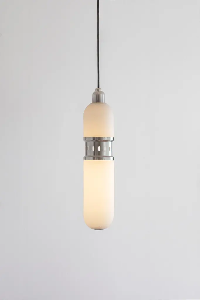 Occulo nickel pendant lamp by Bert FrankDimensions: 35 x H 46 cm Materials: nickel, glassAvailable in brushed brass, dark bronze or satin nickel.All our lamps can be wired according to each country. If sold to the USA it will be wired for the USA for instance.When Adam Yeats and Robbie Llewellyn founded Bert Frank in 2013 it was a meeting of minds and the start of a collaborative creative partnership with engineering at the core.Both men share a love of design and deep respect for the heritage of British engineering. Both wanted to create high-end products that would stand the test of time and fly in the face of throwaway consumerism. The partnership has resulted in award-winning lighting and accessories that fuse the integrity of the small-scale workshop with timeless aesthetics reimagined for today.The two men work closely together from concept to end product. Robbie’s imagination and occasional flights of fancy are informed by Adam’s understanding of engineering principles and fabrication techniques. Equally, Adam's designs are often the starting point for a collection. In that sense Bert Frank is a true creative collaboration. As a result, every designed is honed to perfection, every detail carefully considered.
