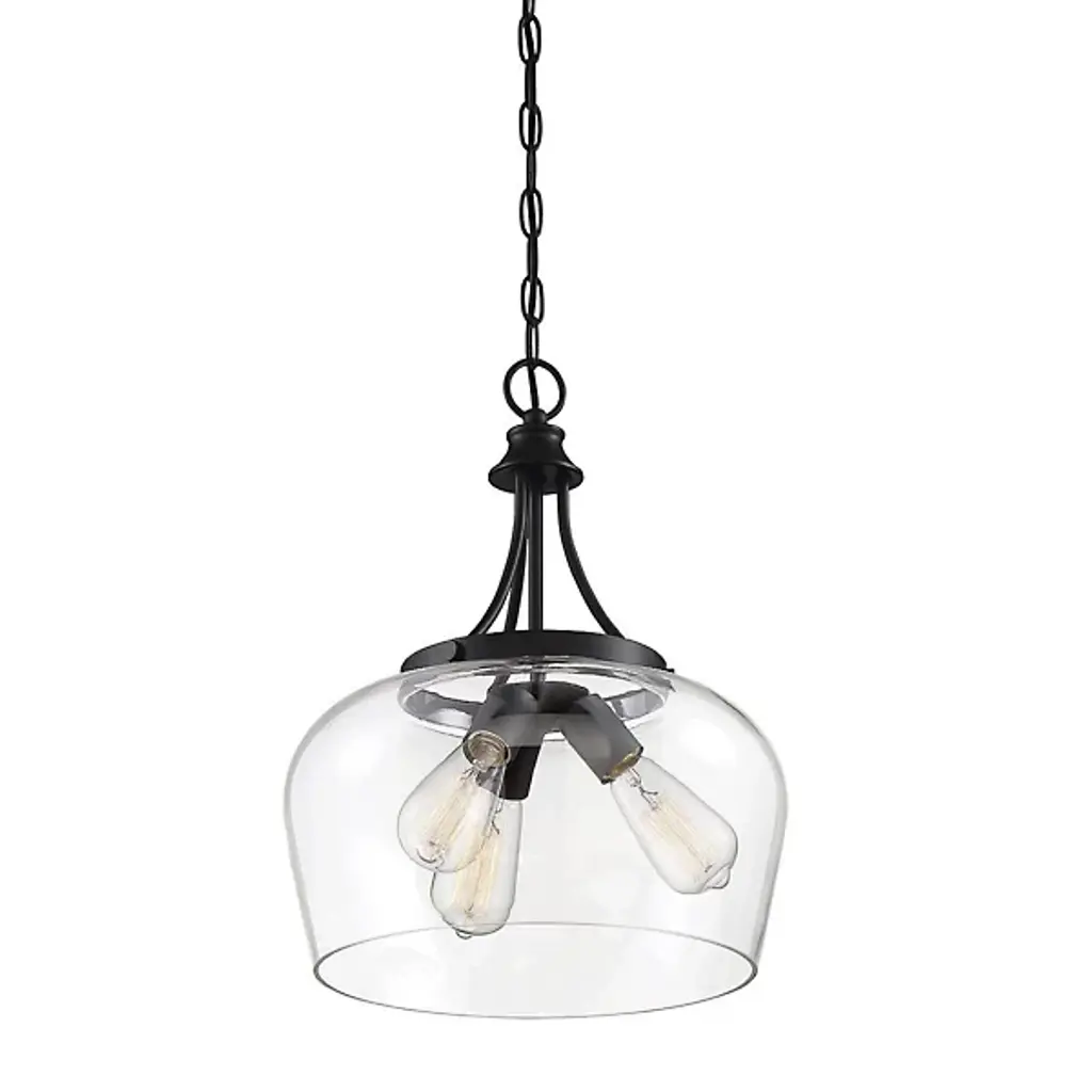 Accentuate the beauty and clarity of your home with the Savoy House Octave 3-Light Pendant. A curved large glass shade with sleek detailing gives this fixture a luxurious appeal that will enhance any surrounding décor scheme, while the visible light sources combine to deliver a comforting glow that’s sure to put everyone at ease. Available in various finishes, this pendant is elegance exemplified.