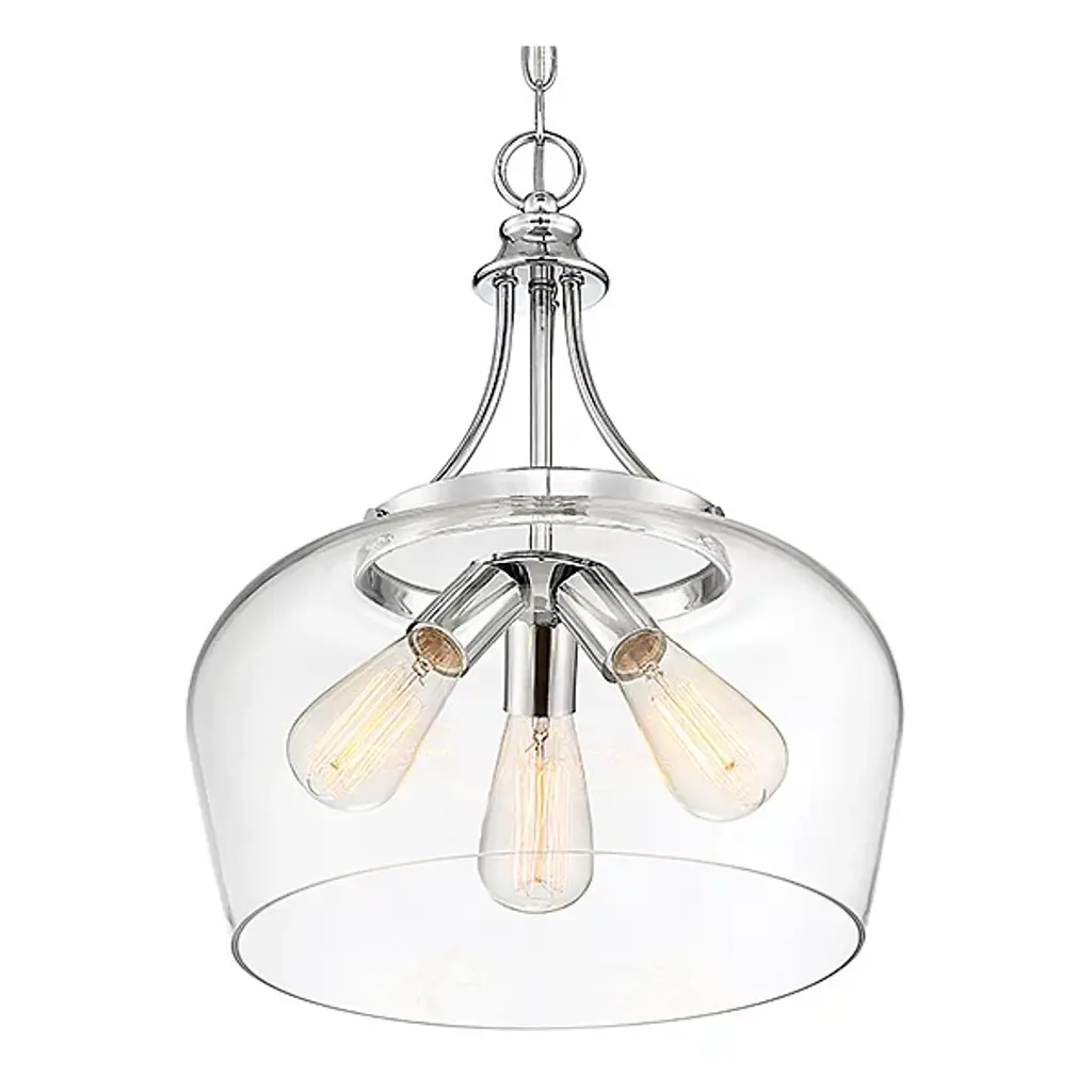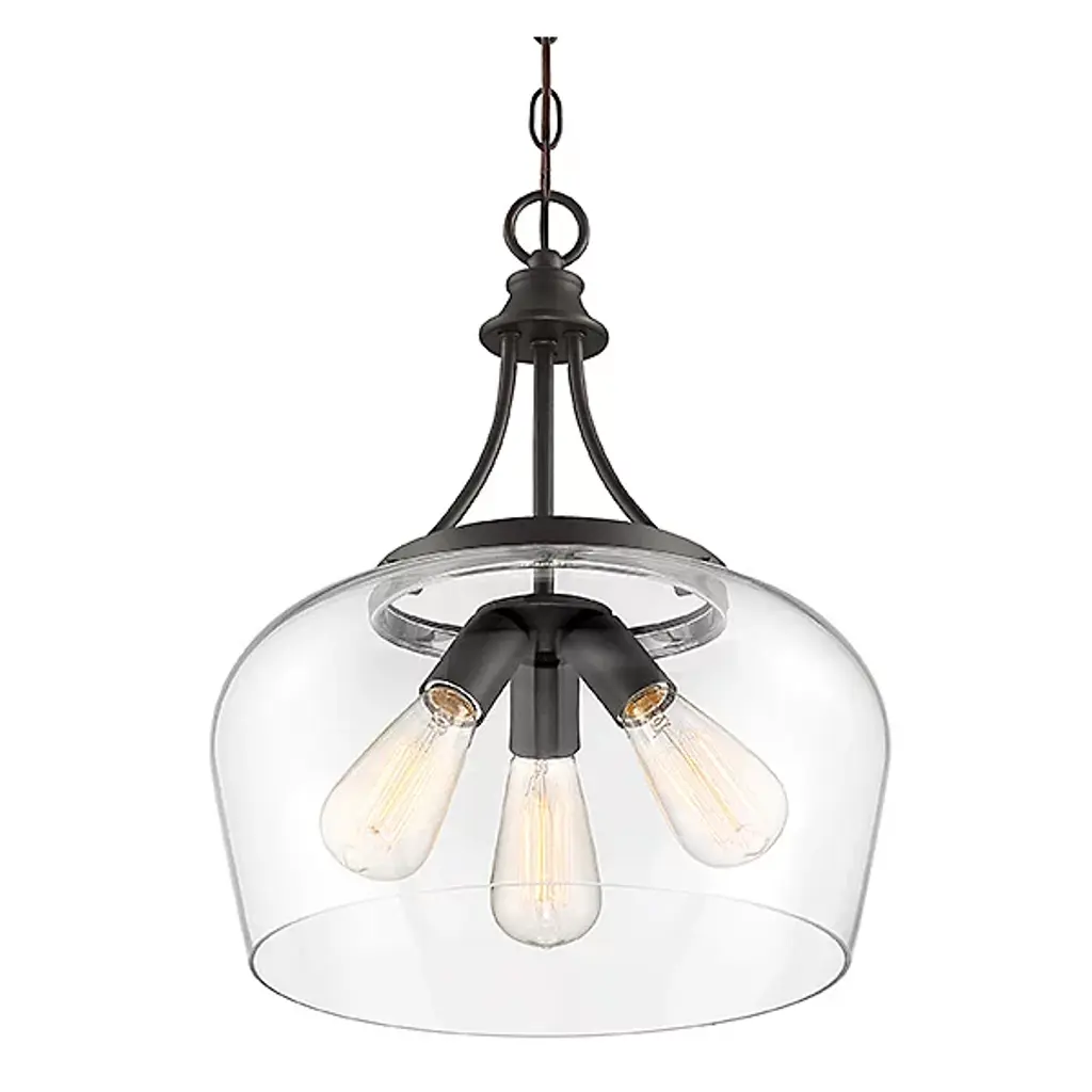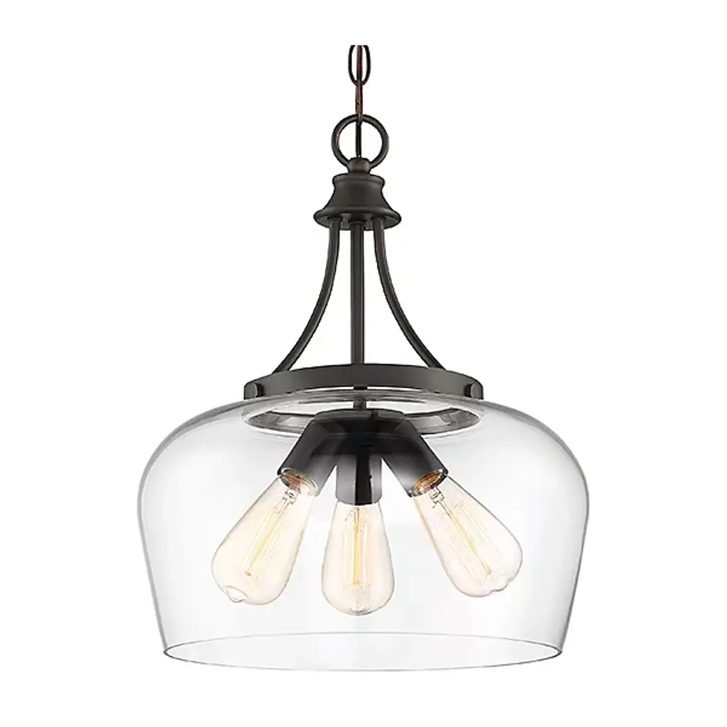 Accentuate the beauty and clarity of your home with the Savoy House Octave 3-Light Pendant. A curved large glass shade with sleek detailing gives this fixture a luxurious appeal that will enhance any surrounding décor scheme, while the visible light sources combine to deliver a comforting glow that’s sure to put everyone at ease. Available in various finishes, this pendant is elegance exemplified.