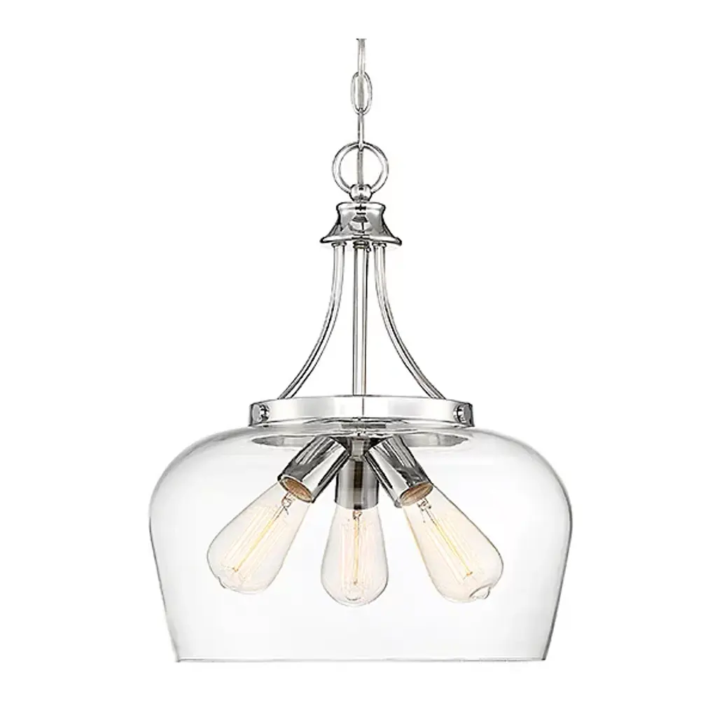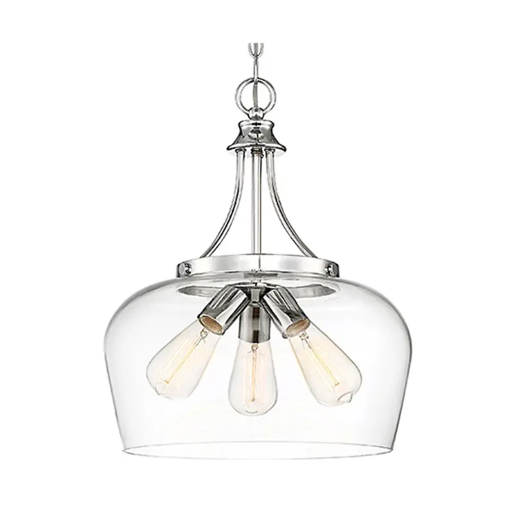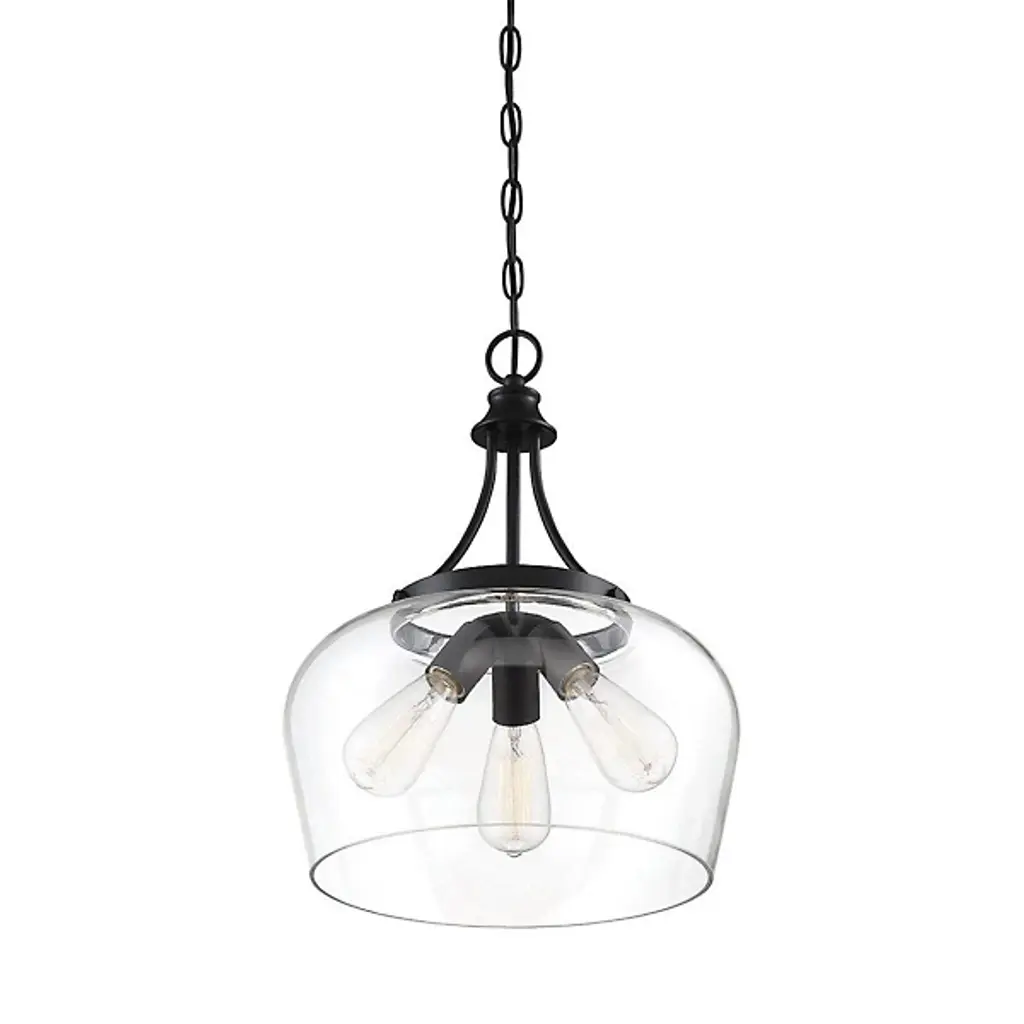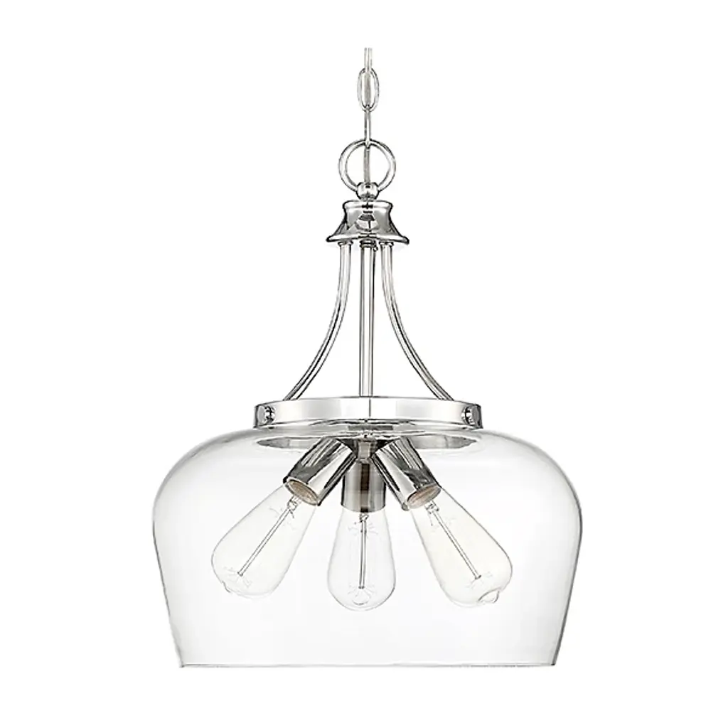 Accentuate the beauty and clarity of your home with the Savoy House Octave 3-Light Pendant. A curved large glass shade with sleek detailing gives this fixture a luxurious appeal that will enhance any surrounding décor scheme, while the visible light sources combine to deliver a comforting glow that’s sure to put everyone at ease. Available in various finishes, this pendant is elegance exemplified.