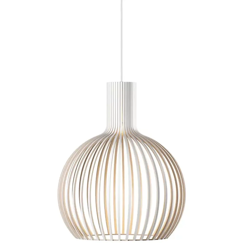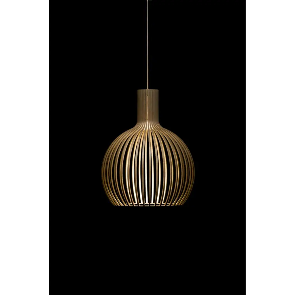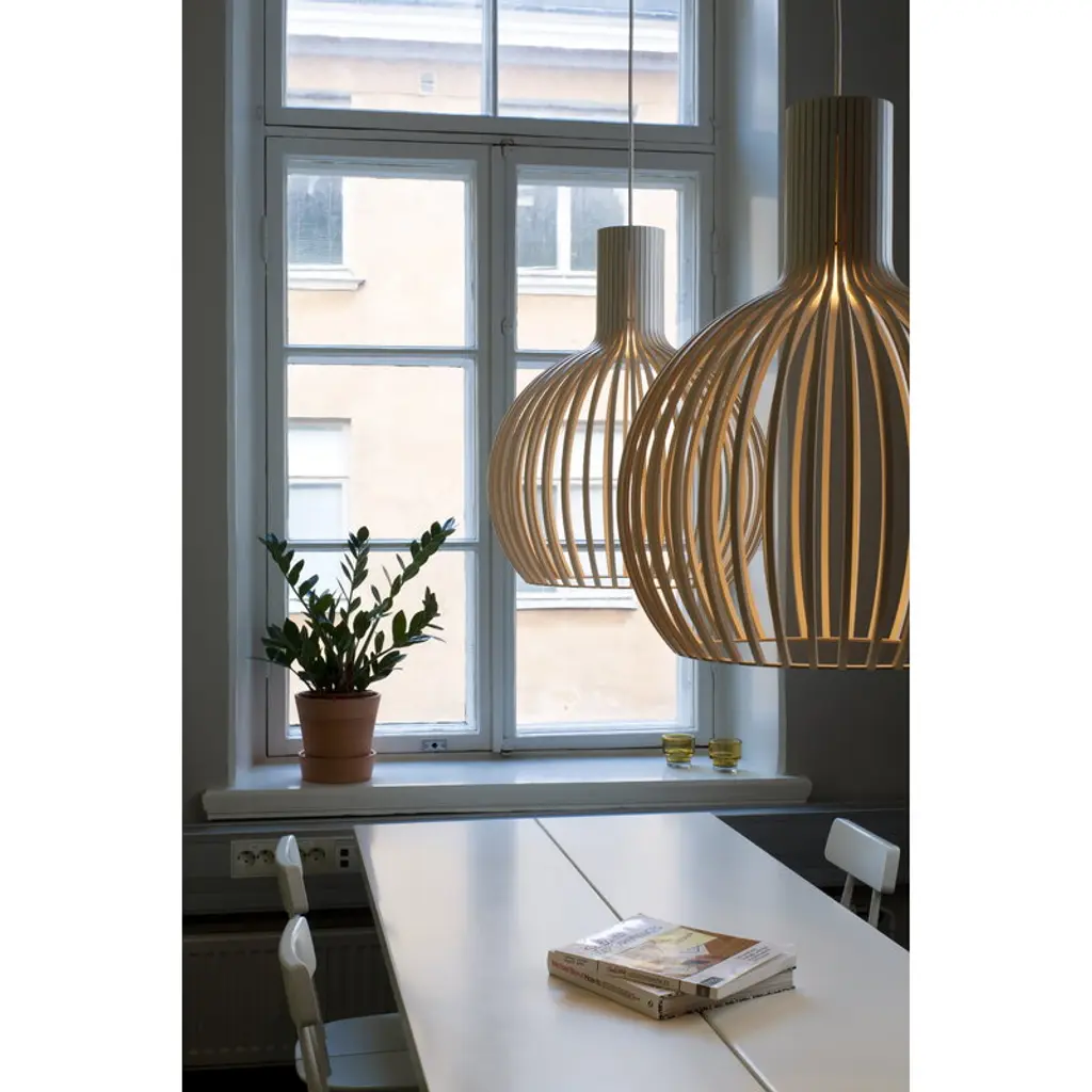 Octo Small 4241 pendant is a smaller version of the popular Octo 4240 lamp by Secto Design. Measuring 17.72 in (45 cm) in diameter, the Octo Small charms by its own or in groups. Secto Design luminaires are handmade in Finland from form-pressed Finnish birch. The lamps have clean Scandinavian silhouettes, and the wooden surface gives them a warm and appealing character. Secto lamps are designed by architect Seppo Koho who wanted to develop a softly filtering light that doesn’t dazzle but invites people to come closer. Secto lamps emphasize space and environment by creating a unique atmosphere and feeling of closeness.