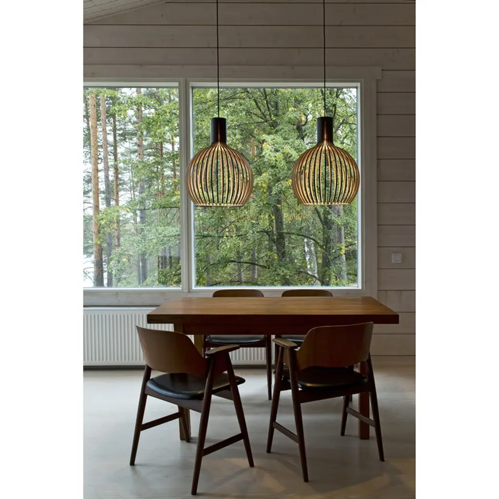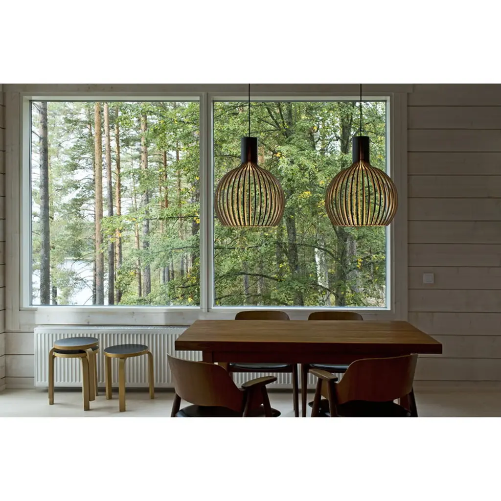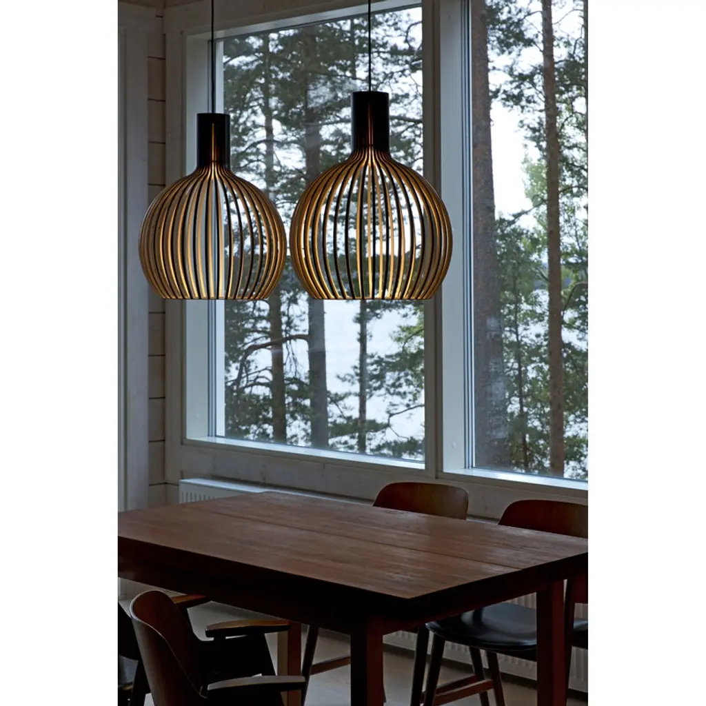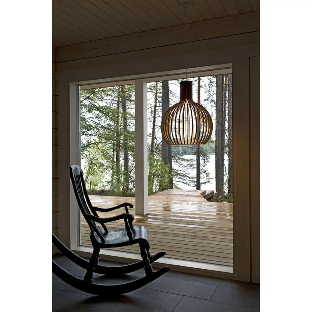 Octo Small 4241 pendant is a smaller version of the popular Octo 4240 lamp by Secto Design. Measuring 17.72 in (45 cm) in diameter, the Octo Small charms by its own or in groups. Secto Design luminaires are handmade in Finland from form-pressed Finnish birch. The lamps have clean Scandinavian silhouettes, and the wooden surface gives them a warm and appealing character. Secto lamps are designed by architect Seppo Koho who wanted to develop a softly filtering light that doesn’t dazzle but invites people to come closer. Secto lamps emphasize space and environment by creating a unique atmosphere and feeling of closeness.