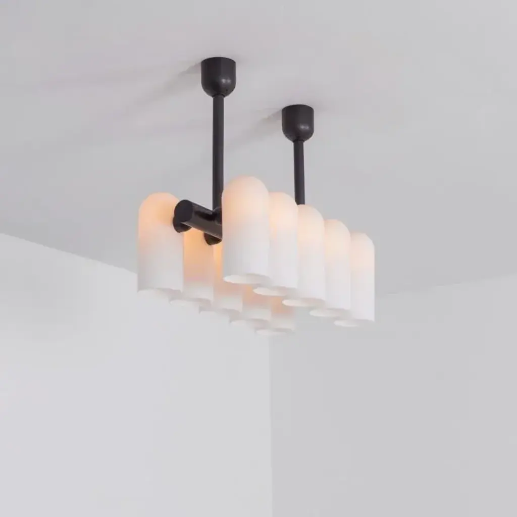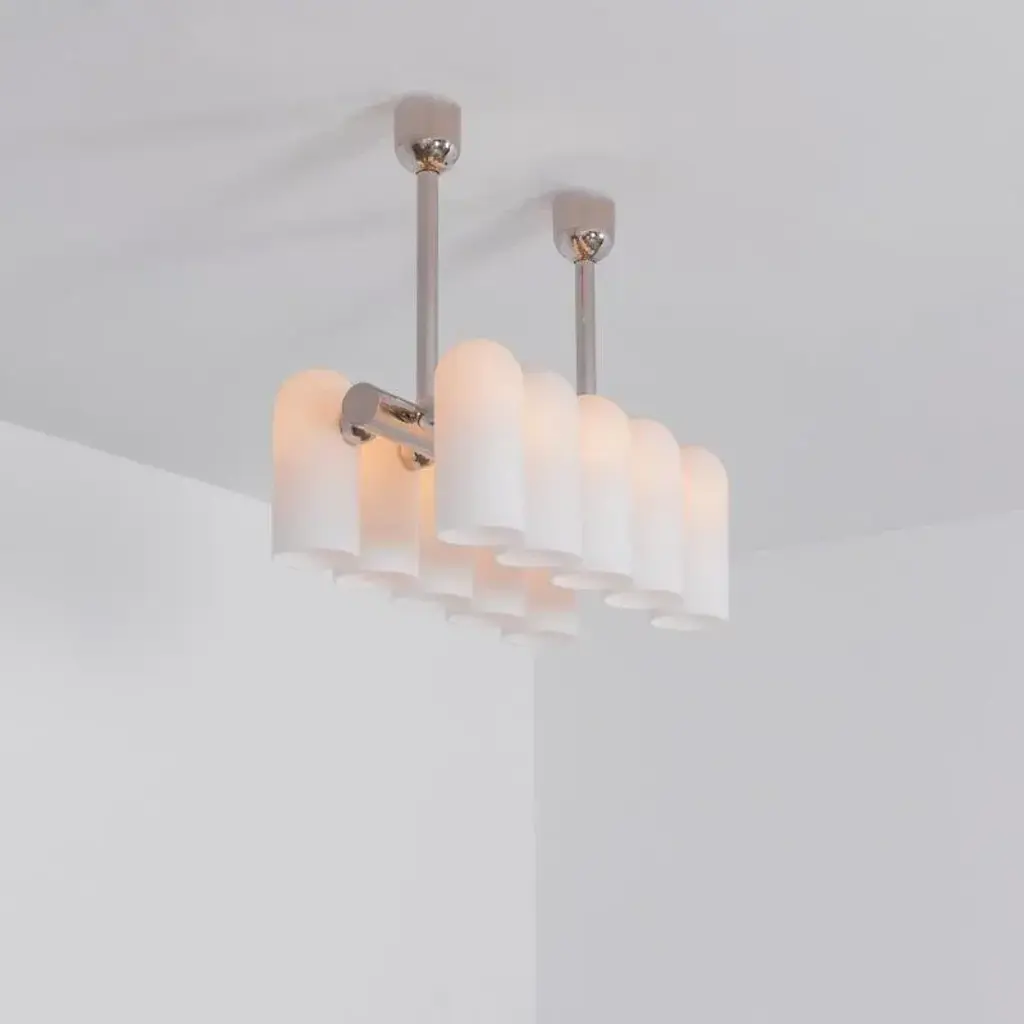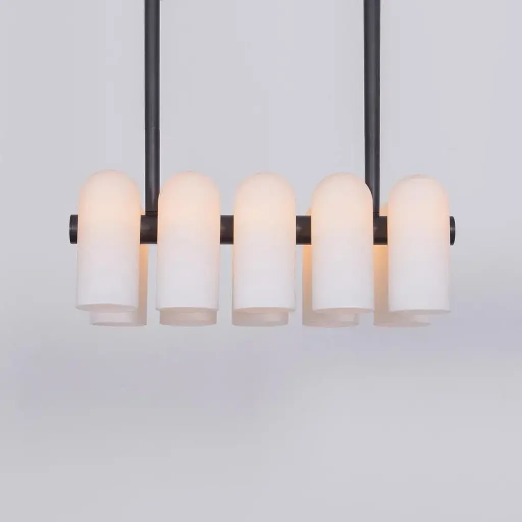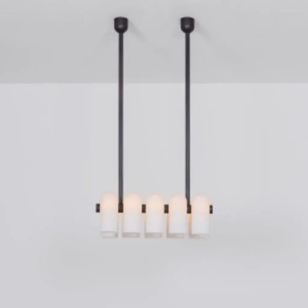 Odyssey linear sm polished nickel chandelier by schwung dimensions: w 114 x d 31 x h 132 cm materials: polished nickel, frosted glass finishes available: black gunmetal, polished nickel, brass schwung is a german word, and loosely defined, means energy or momentum of a positive manner. Synonyms: verve, zest, panache, momentum. Mission developing lighting fixtures through simple and timeless materials, sustainably, we are committed to creating quality products that last. Beginning with the design we are constantly refining aesthetic and function. Both in the lamps themselves and throughout the manufacturing process we pursue a holistic approach to efficiency, and the reduction of environmental impact. Concept schwung is a lighting concept, connecting aesthetic and quality through matter. An exploration of history, forms and function, elegantly fulfilling an essential need of modern life, capturing light. Our pieces play with architecture or create spaces of their own. up to 250v (europe/uk standard).