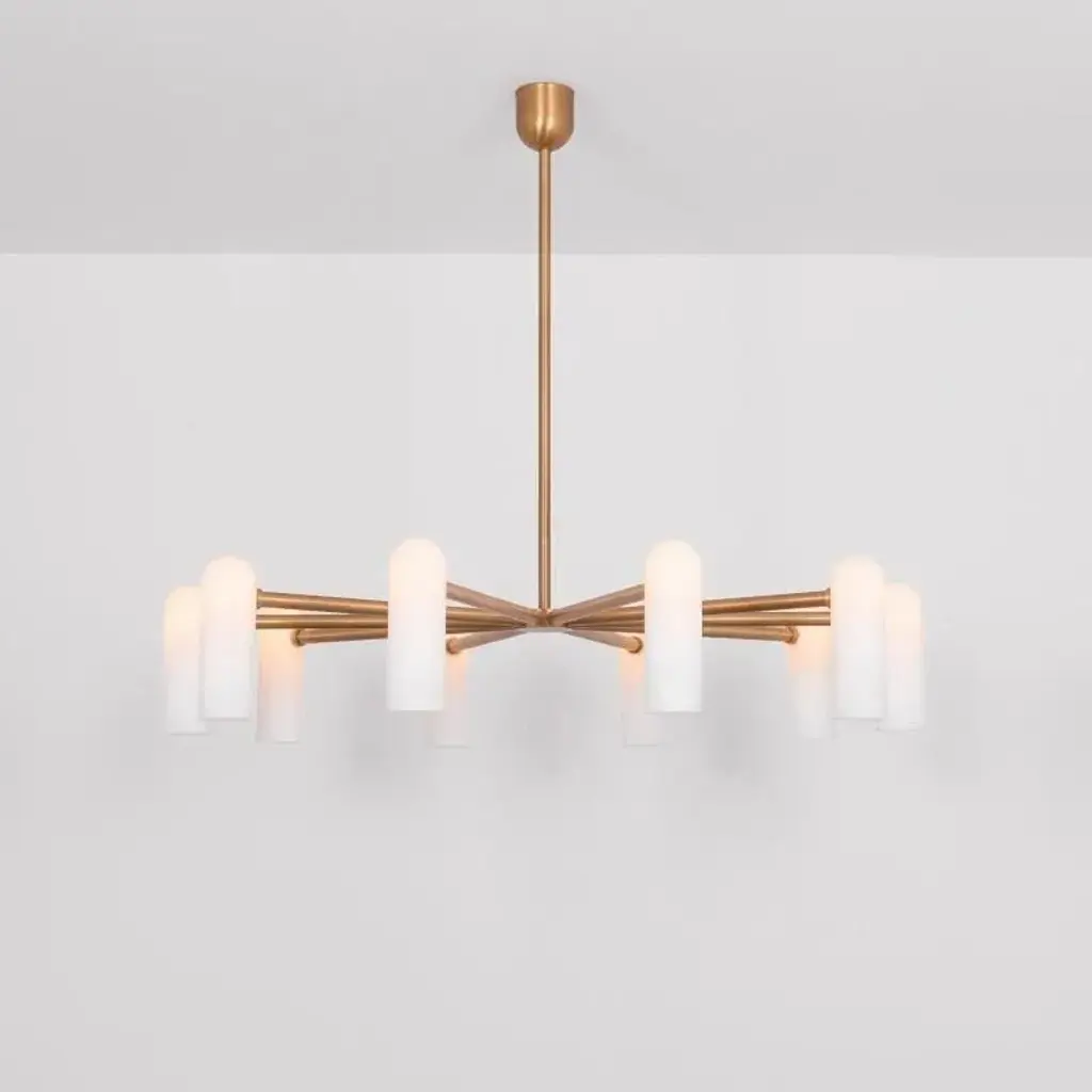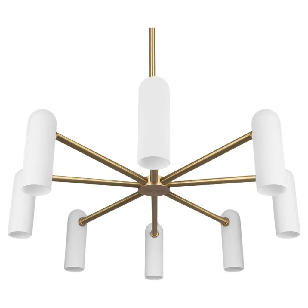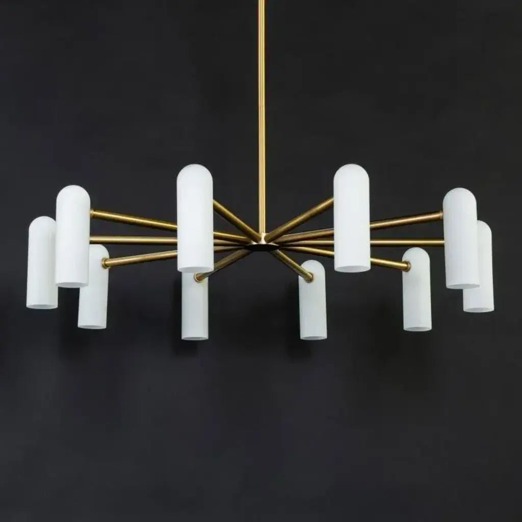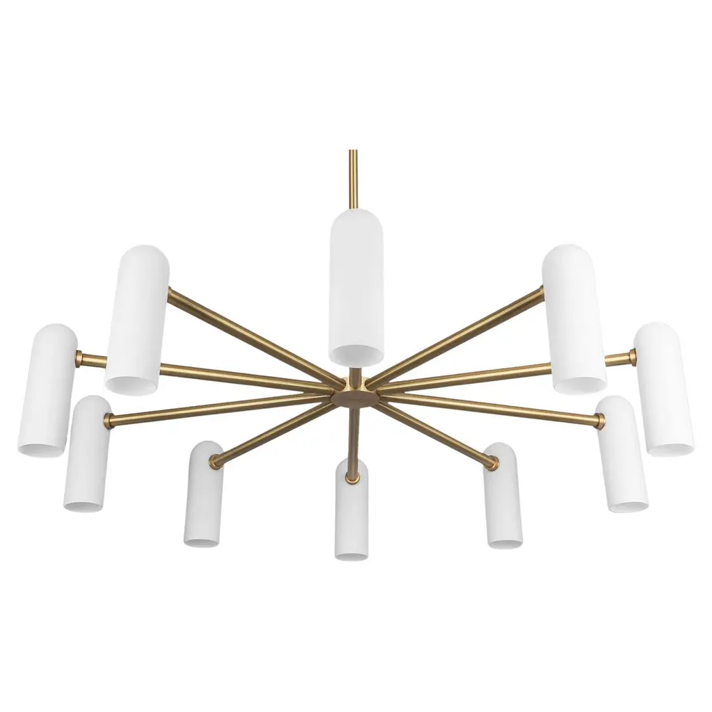 Odyssey round lg brass chandelier by schwung dimensions: w 152 x d 152 x h 131 cm materials: solid brass, frosted glass finishes available: black gunmetal, polished nickel up to 250v (europe/uk standard).