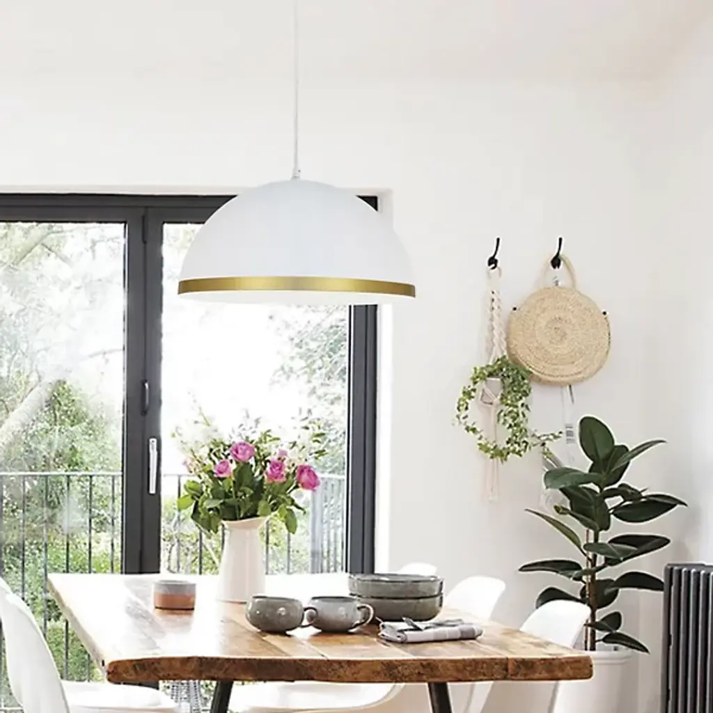 Sleek and simple, yet incredibly stylish, the Ofelia Dome Pendant from Dainolite matches with a range of styles in the home to bring a beautiful accent piece to your favorite spaces. Showcasing a transitional style, the metal dome-shaped shade hangs from the end of a thin wire and holds a single bulb. A wide mouth allows for the light to escape with ease, spreading fully into the space around it with a bright and inviting layer of light.