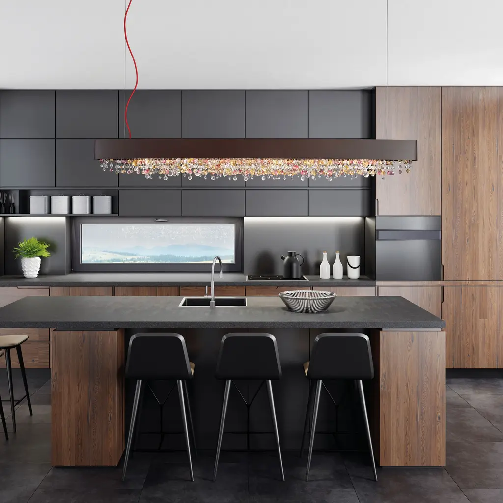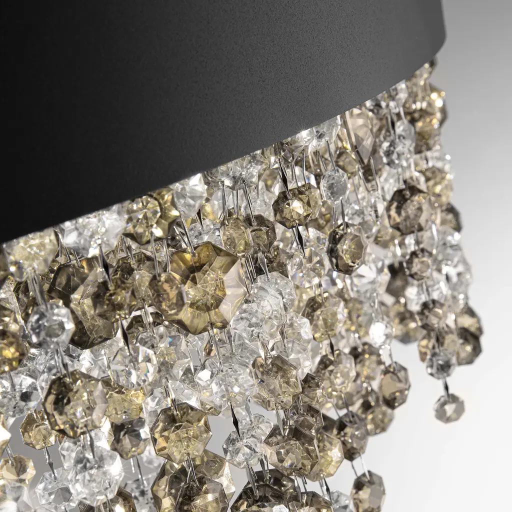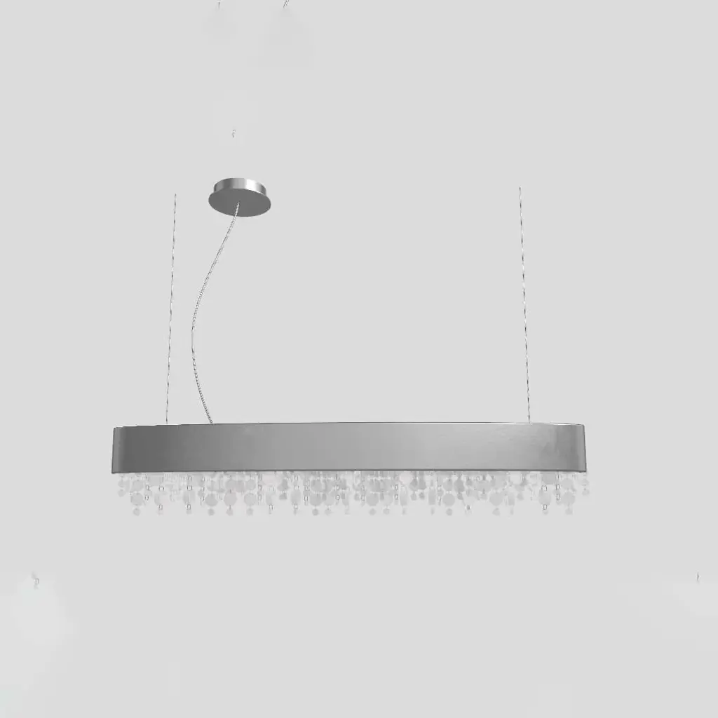 Add eye-catching allure to your space with the Ola Oval Large Pendant Light from Masiero. This contemporary masterpiece combines handsome metallics with gleaming gems, and features a continuous expanse of coated Italian glass strands for a touch of luxury. Available in four finishes and complemented by cascading colored crystals, Ola offers four unique looks to suit any interior. Highlights