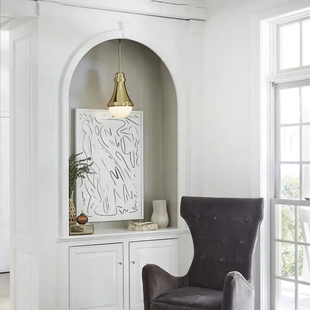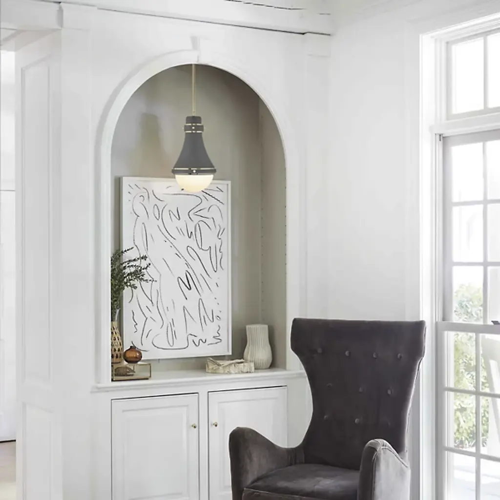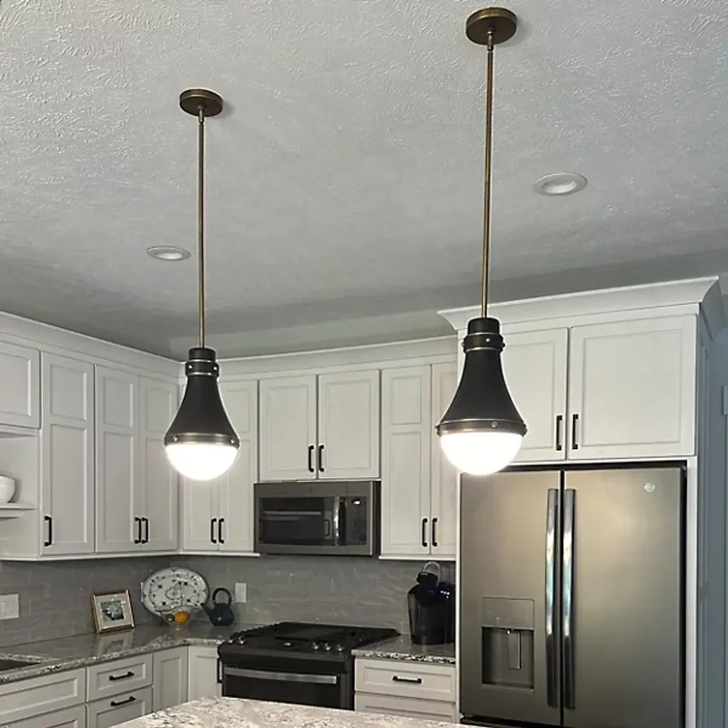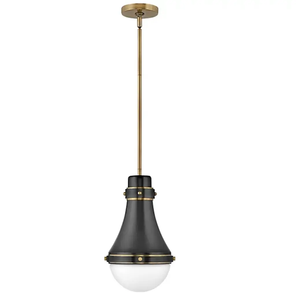 Sleek, elegant, robust. Enhance the modern or traditional features of your rooms with the versatile transitional design of the Oliver Pendant from Hinkley Lighting. It brings inspired flavor in its beautiful teardrop silhouette. This silhouette is spun in metal and styled up with industrial accents like a crisp band and handsome knobs. Unmatched in its light diffusion properties, an etched opal glass shade rounds out the bottom in a charming oversized scale. Hanging in the air with a sleek adjustable downrod, the piece pushes out a spacious stream of radiant downlighting.
