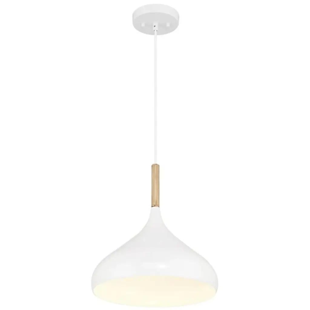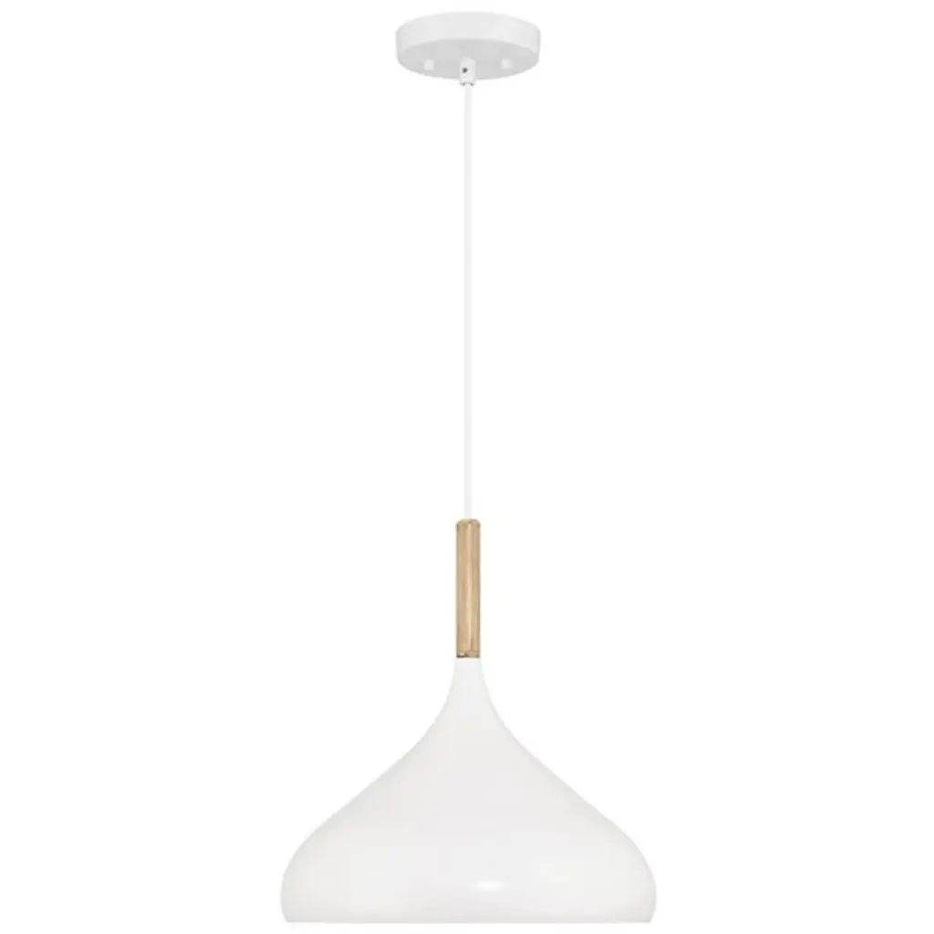Presenting the Olivia Pendant by Access Lighting - the perfect addition to your modern living spaces. Whether it's the living room, dining room, kitchen, office, or the foyer, this pendant can effortlessly add an elegant touch. Crafted from a combination of steel and wood, the pendant provides a contemporary twist to the classic design. Featuring a cone-shaped shade, it's made to direct light beautifully, providing you with a warm and welcoming atmosphere. As this pendant is Damp and ETL listed, you can comfortably install it in spaces with relatively humid conditions.