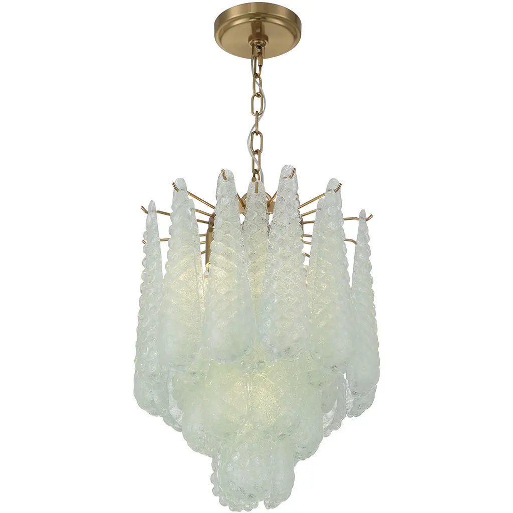 Inspired by vintage and mid-century design, the Ollie collection features hand-blown glass with intricate raised details. The beautiful hues of this collection shift subtly depending on whether the light is on or off, creating a dynamic and artistic effect. This unique piece blends mid-20th-century charm with a modern touch, making it a true statement fixture.