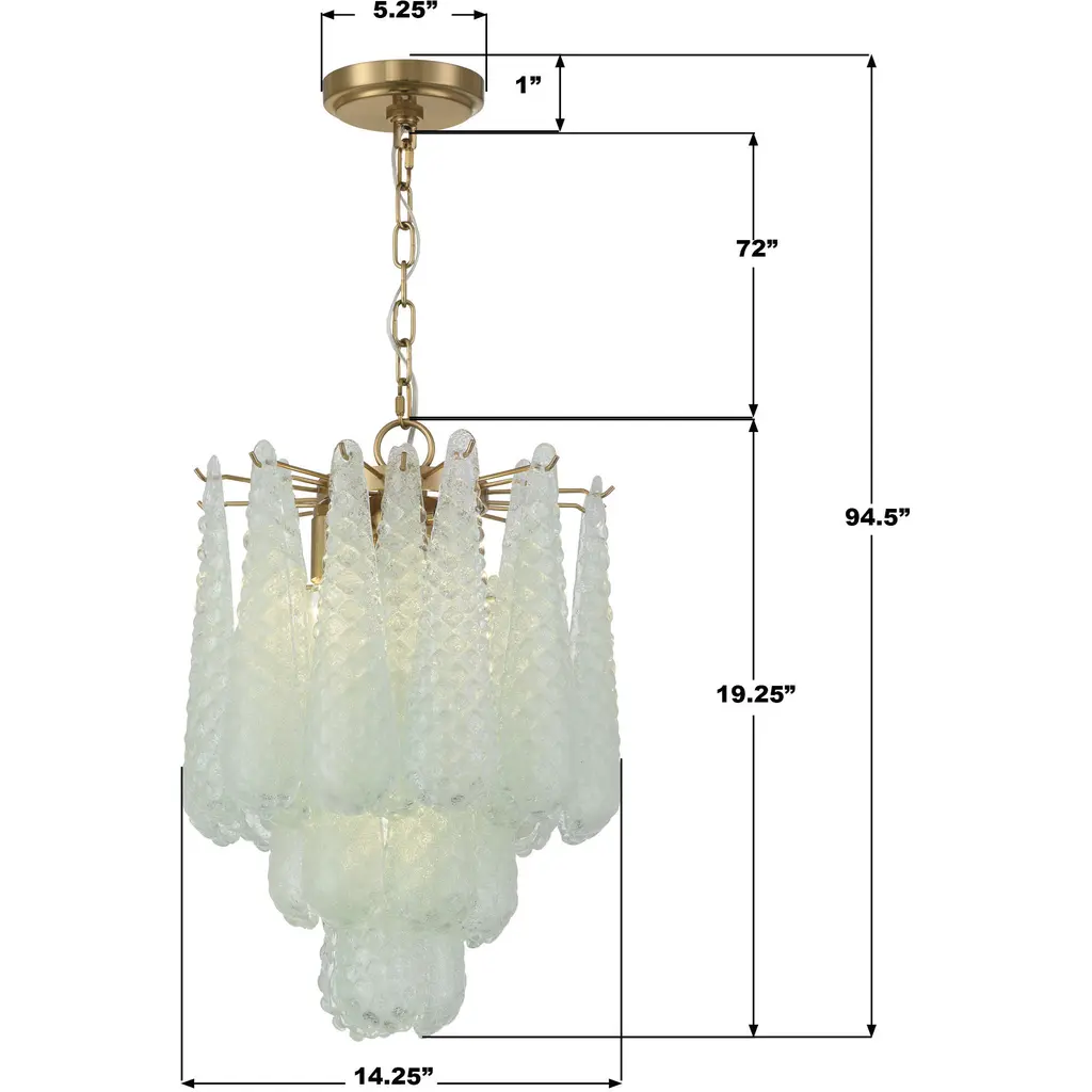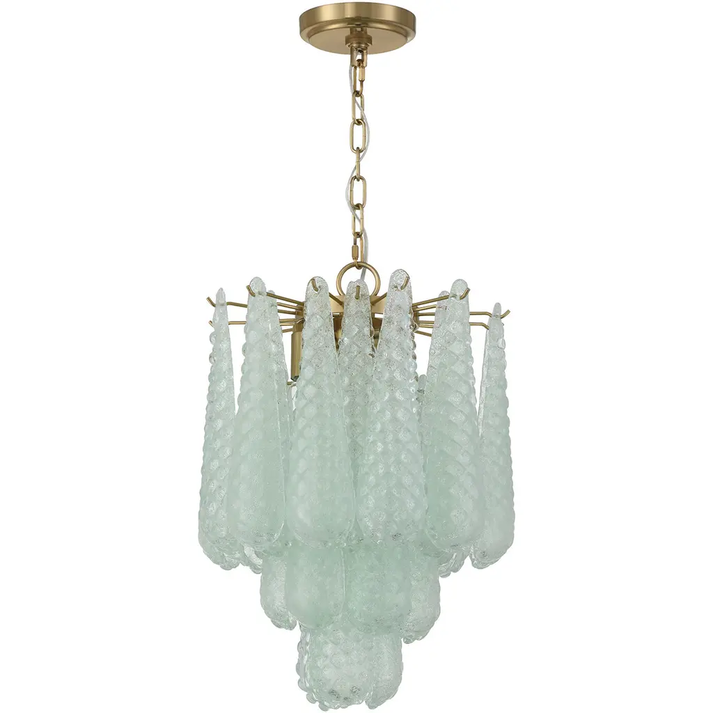 Ollie 4 Light 14.25 Inch Aged Brass Pendant Ceiling Light In Sand Glass Green