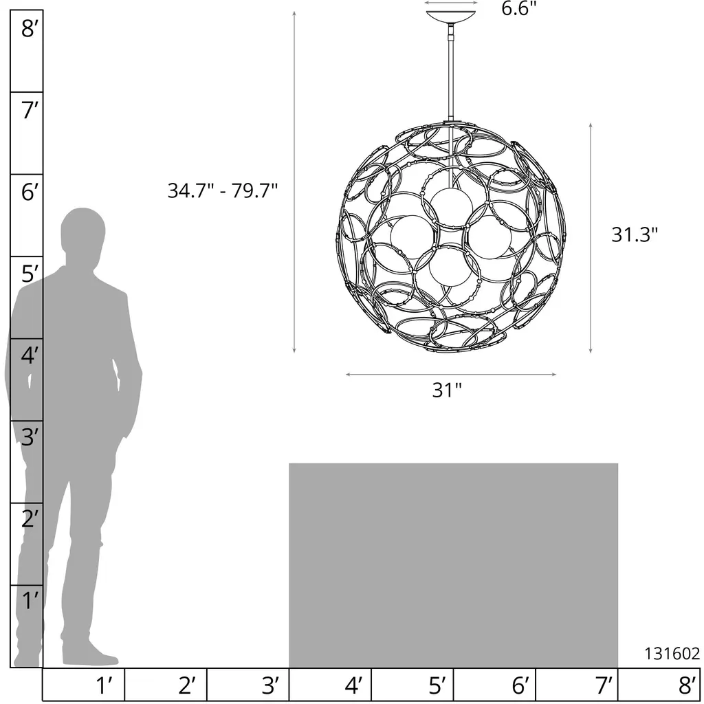 The Olympus Orb Pendant is a real showstopper. Grand in every way, the Orb's exoskeleton is handmade by Vermont metalcraft artisans, with rings of steel creating the outer sphere. A balanced blend of smooth and forged rings, each forged ring is formed and then hammered to create the unique textures and patterns found throughout. Each ring is then welded together to form a perfect sphere. A cluster of lights within glass globes are at the core of the Olympus Orb. A focal piece in any space, the Orb is perfectly suited for great rooms, grand foyers or living spaces. The Olympus Collection includes the Orb, horizontal and vertical pendants, wall sconce, and two sizes of starburst pendants.