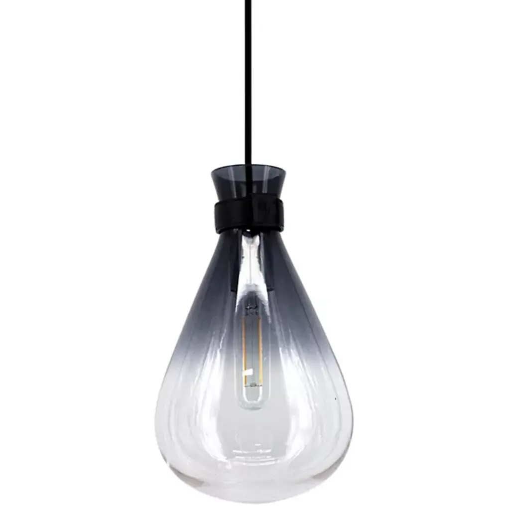 The Omega 12 Pendant is a transitional design composed of a corded transparent steel glass cylinder pendant, with an interesting gradient pattern from top to bottom of the glass. The dramatic play of light through the gradient color is a sophisicated affect, along with the modest display of the lamp filament behind the glass. The cord pendant fixture is equipped with a 10' SVT cordset and a low profile flat monopoint canopy. These stylish and functional luminaries are offered in a beautiful Black finish.