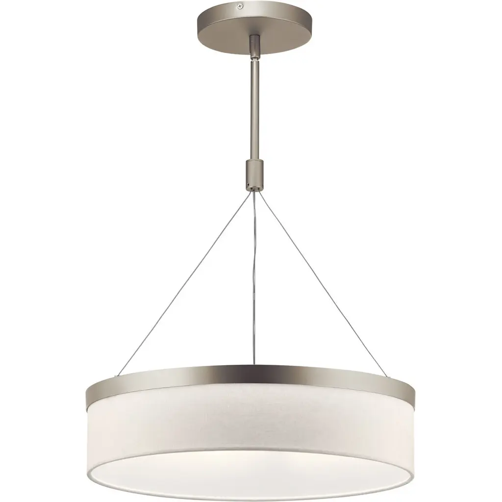Have a pleasantly illuminated one-to-one with the One in One Pendant from Seascape Lamps. Over your dining room or coffee table, this piece generates a radiant glow filtered perfectly through an opaque diffuser pate. Glazed with the warm hue of its light, its inner drum shade brings vibrant energy in its plump drum shape. Its outer ring shade floats in the air with a magical touch, held up by-ultra sleek wiring.