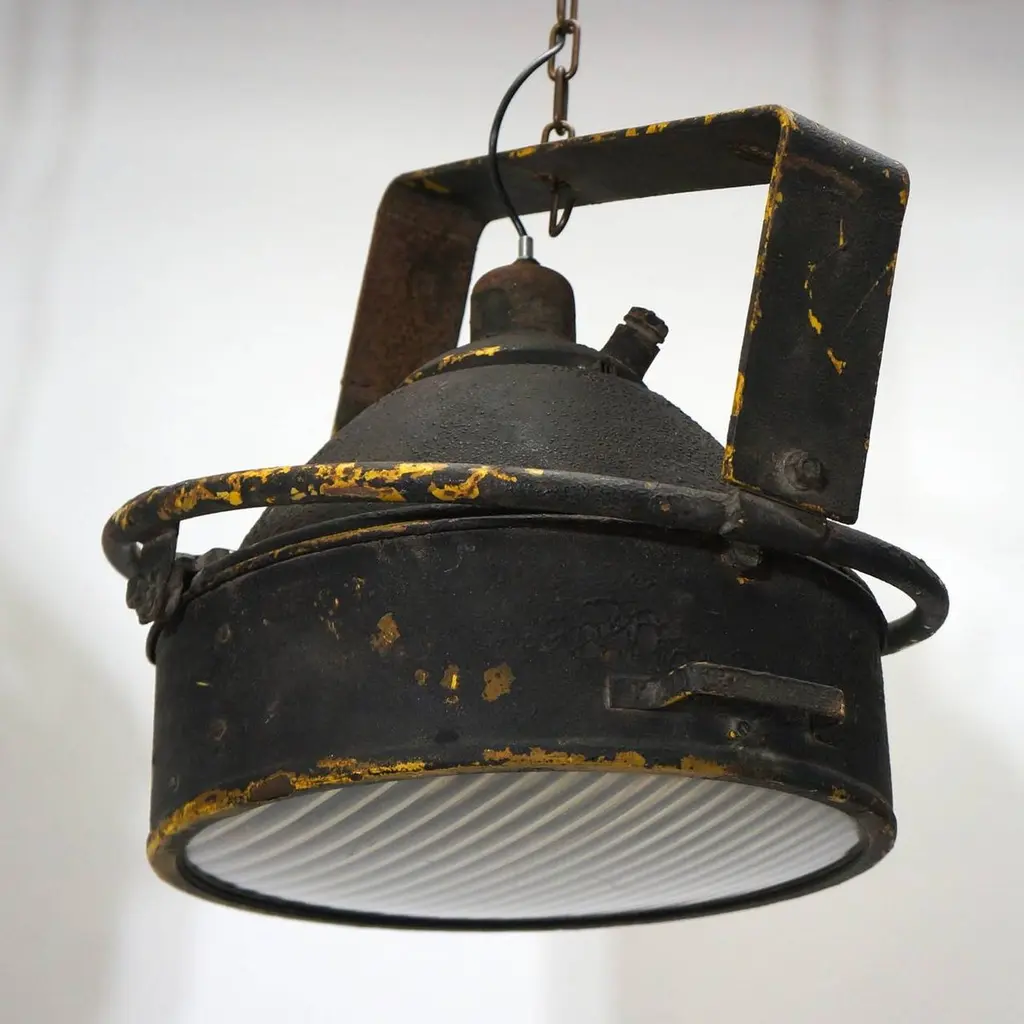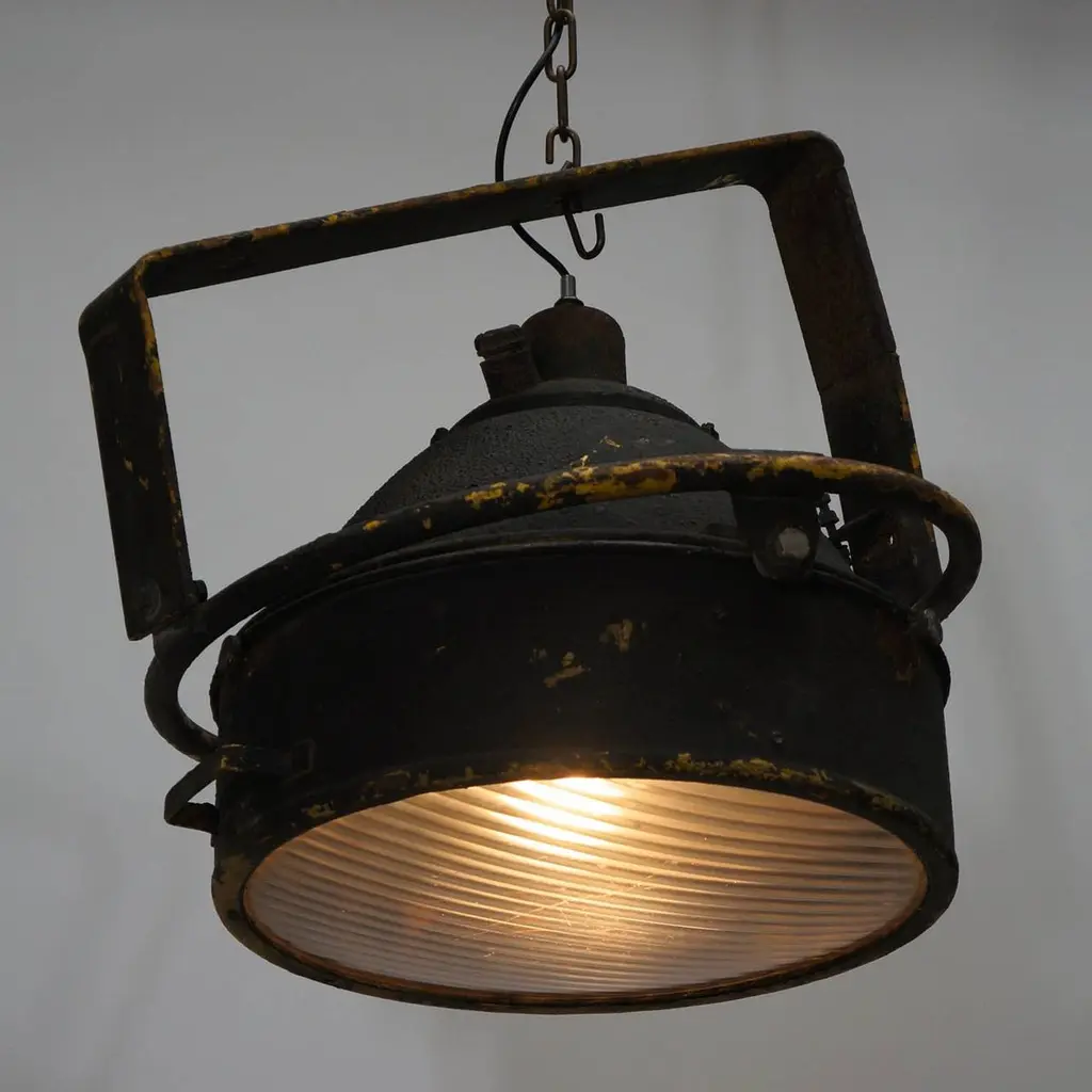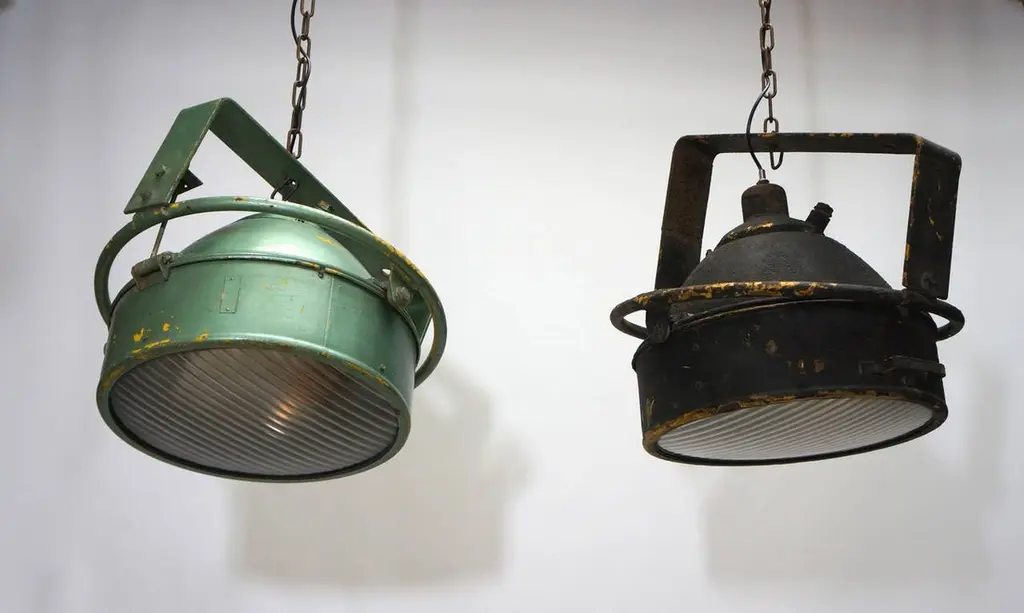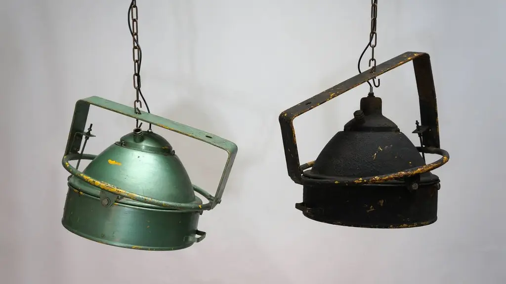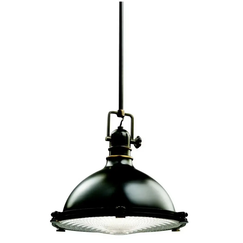 Two beautiful black and green Industrial pendant lights in glass and metal.