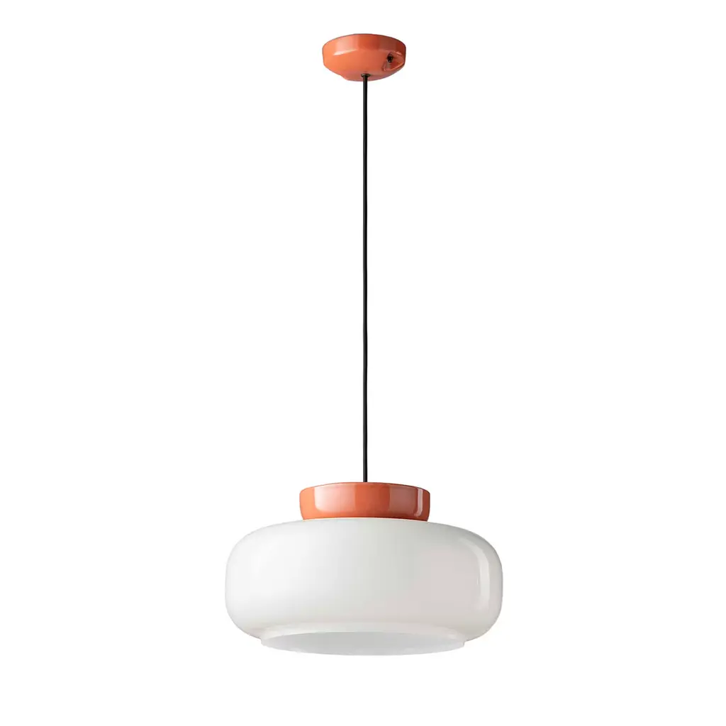 Opal Arch Rusty Red Pendant by Warm NordicDimensions: D23 x H18 cmMaterial: Lacquered steel, Sand blasted opal glassWeight: 2 kg.Also available in different colours. Please contact us.The Opal Arch pendant was designed in the 1950s by the Danish designer, Svend Aage Holm-Sørensen. Opal glass has a special lighting quality. For Opal Arch the internationally renowned lighting designer went for three layers of opal glass to create a particularly warm glow. The pendant's illuminating glass core is encased in a sculptural metal crown, and the luxurious look is further underscored by the solid brass top. A single pendant in a kitchen, a bedroom or cosy corner in a living room will provide gorgeous indirect lighting. Just as elegant is a cluster of three Opal Arch pendants hovering together over a dining table.Warm Nordic is an ambitious design brand anchored in Nordic design history and with a timeless, aesthetic style that inspires you to appreciate the little things in life. The company is the result of several years’ intense work on developing a new design brand with design history, quality and personality at its core. Warm Nordic boasts a colourful and charming universe of furniture, lamps and accessories full of personality. Our designs encapsulate the Nordic spirit, which in its essence is timeless, inclusive and warm.