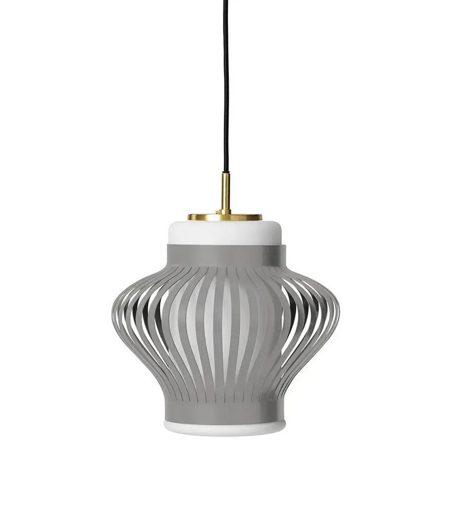 Opal Lamella sky grey pendant by Warm NordicDimensions: D 25.5 x H 25 cmMaterial: Lacquered steel, Sand blasted opal glassWeight: 3.2 kgAlso available in different colours.The Opal Lamella pendant was designed in the 1950s by Danish light master Svend Aage Holm-Sørensen. Opal glass offers something special when it comes to light, and the internationally renowned light designer chose opal glass for the Opal Lamella pendant to create a special warm glow. The glowing glass core of the pendant is embraced by a sculptural metal crown, the luxurious look being further underpinned by the solid brass top. Wonderful indirect lighting when used as a single pendant in the kitchen, in the bedroom or a living-room nook, and equally elegant when three Opal Lamella pendants hover side by side over the dining table.Warm Nordic is an ambitious design brand anchored in Nordic design history and with a timeless, aesthetic style that inspires you to appreciate the little things in life. The company is the result of several years’ intense work on developing a new design brand with design history, quality and personality at its core. Warm Nordic boasts a colourful and charming universe of furniture, lamps and accessories full of personality. Our designs encapsulate the Nordic spirit, which in its essence is timeless, inclusive and warm.