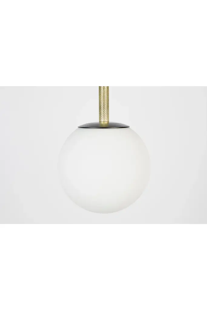 Like its namesake, our Orion does not stand alone but is part of a constellation of luminaries. We have combined the opal glass sphere with all kinds of different materials and textures that reinforce each other. Take that frosted glass, black metal, and brass details. They all contribute to the constellation of Orion lamps. The opal glass sphere casts a beautiful diffused light over everything you hold dear.