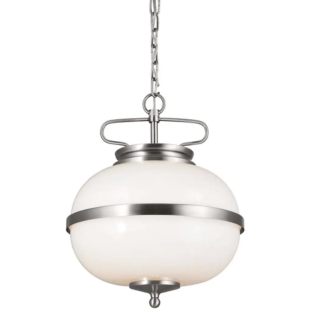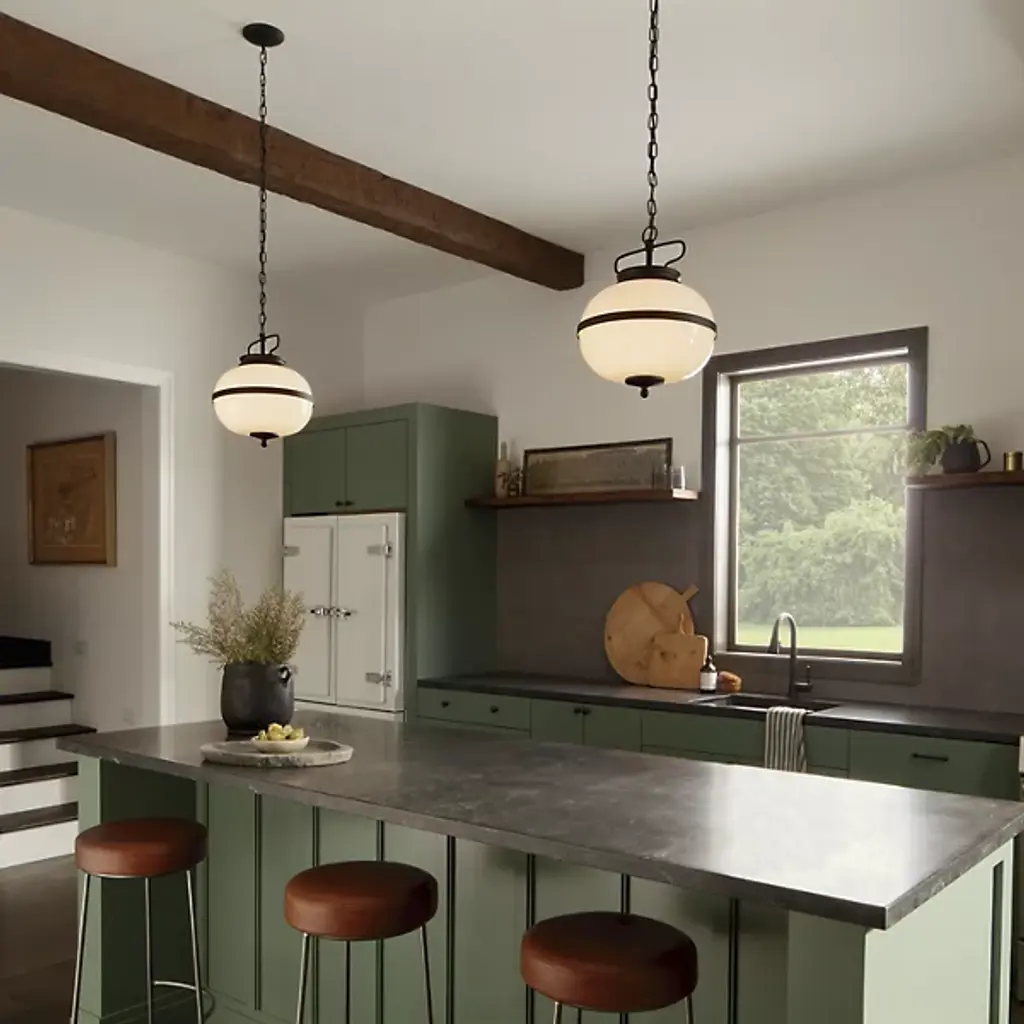 Bring an aura of sophistication to your decorative arrangement with the Opal Pendant by Kichler. A lovely globe-shaped shade suspends from a chain attached to a canopy at your ceiling. Within this shade rests halogen bulbs which readily illuminate your home. The steel band encircling this shade completes the Opal Pendant’s inventive design. You can pair this light with a standard dimmer and adjust the brightness level of the light produced according to your needs.
