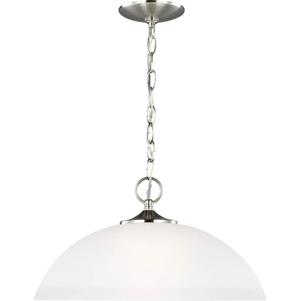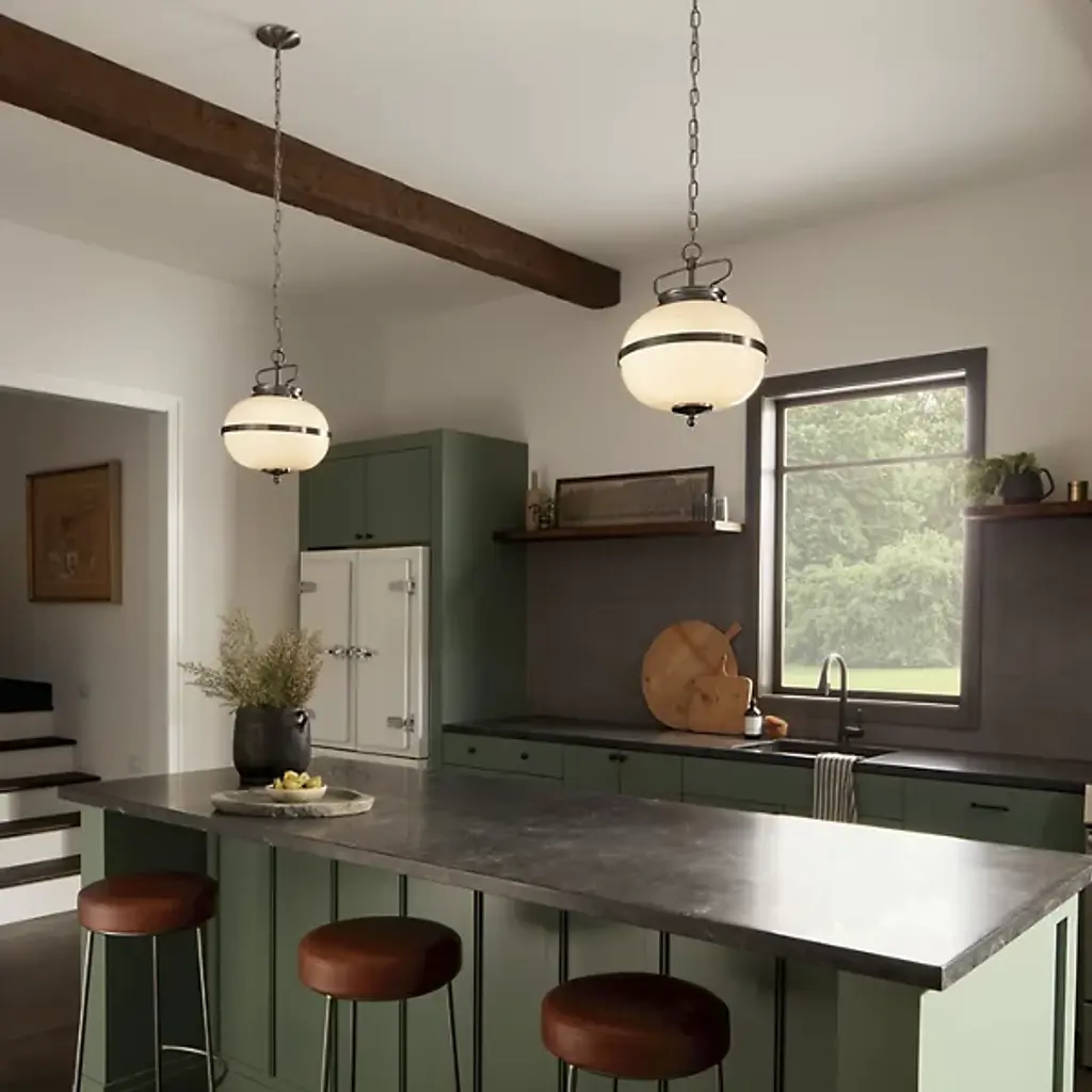 Bring an aura of sophistication to your decorative arrangement with the Opal Pendant by Kichler. A lovely globe-shaped shade suspends from a chain attached to a canopy at your ceiling. Within this shade rests halogen bulbs which readily illuminate your home. The steel band encircling this shade completes the Opal Pendant’s inventive design. You can pair this light with a standard dimmer and adjust the brightness level of the light produced according to your needs.