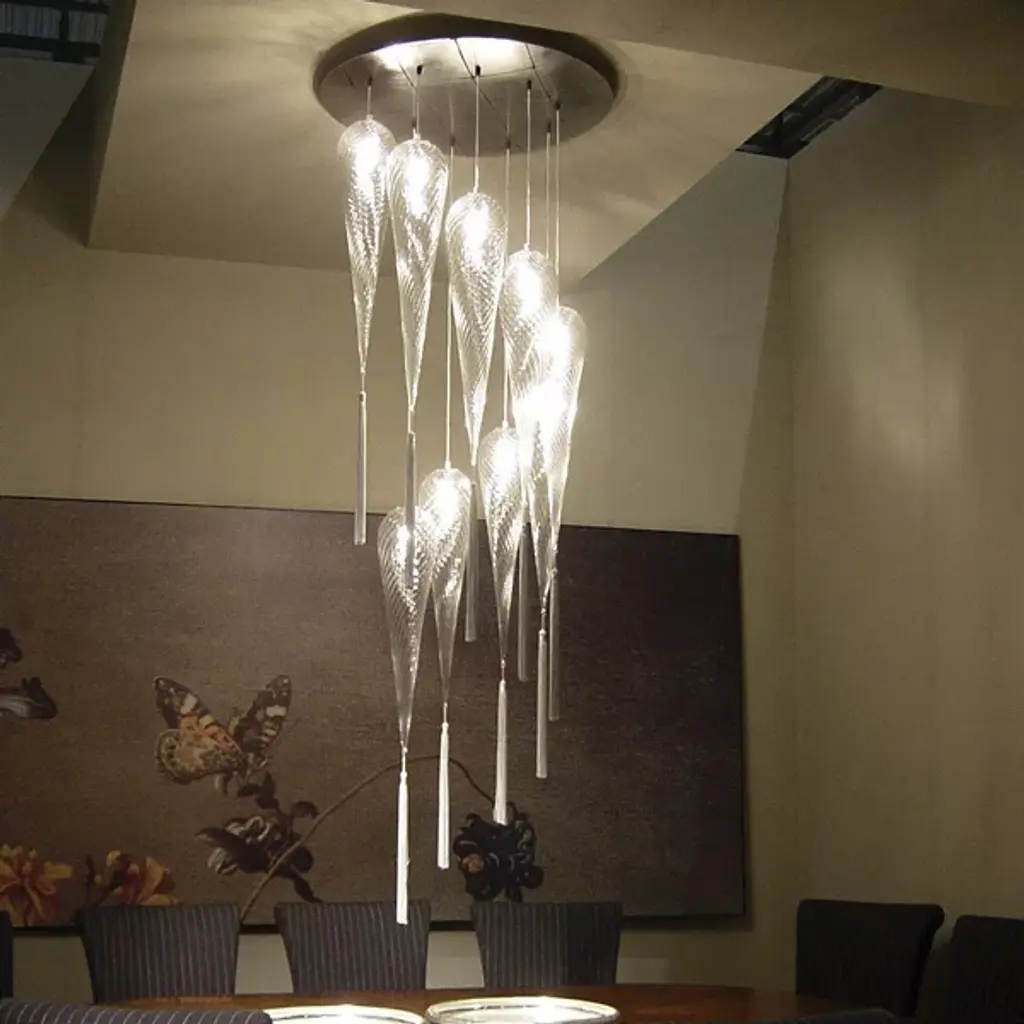 A humble statement of style, inspired by turn-of-the-century aesthetics. Surprise guests with the artful yet familiar silhouette of the Opera Ninive Mini Pendant Light from Melogranoblu. It’s a piece conceived by Melogranoblu to deliver the maximum luminous effect. The piece seduces as a soft tapering form. The one-of-a-kind glass shade is hand-blown by master artisans in Italy. The eyes get lost in the stripes scanning across its surface. The stripes appear like a garment pattern as light from inside seeps through their crevices. The light funnels through and radiates out the glass as an inviting ambient glow. For an elegant throwback, a slim tassel hangs at the end, adding a punch of color and soft thread texture.