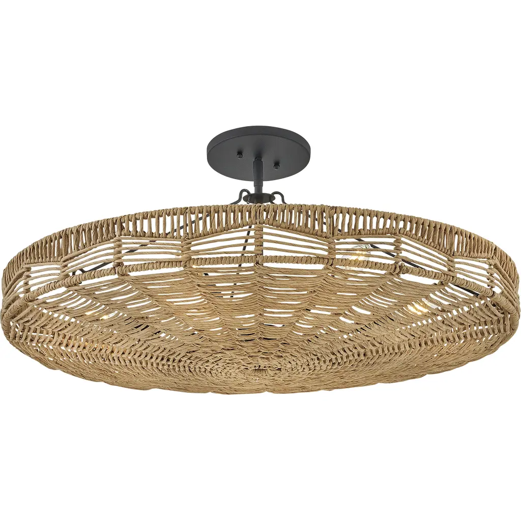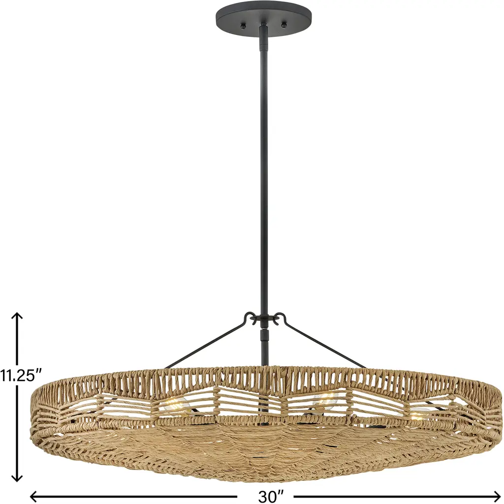 Ophelia 30 Inch Black Indoor Foyer Pendant Ceiling Light In Natural