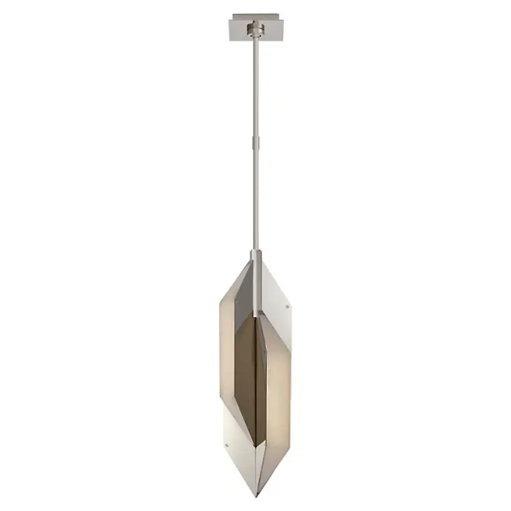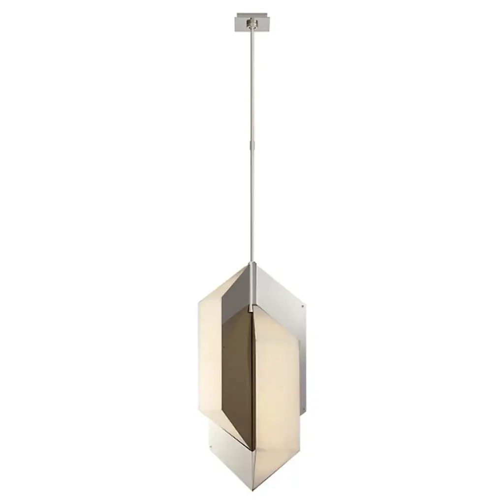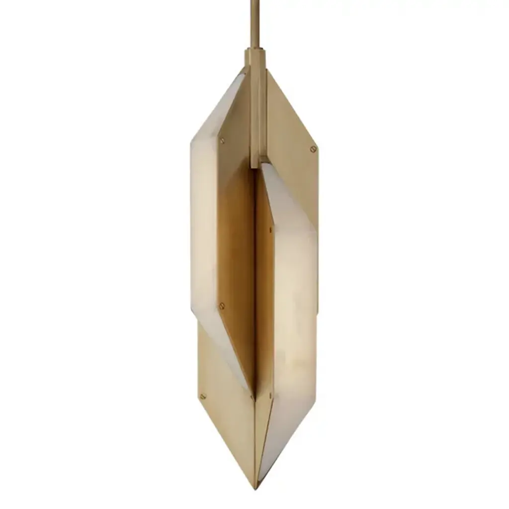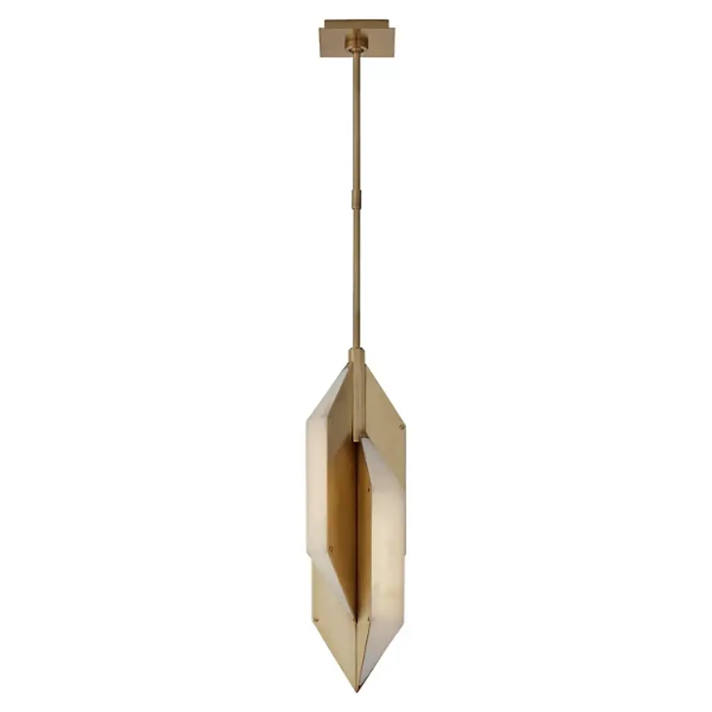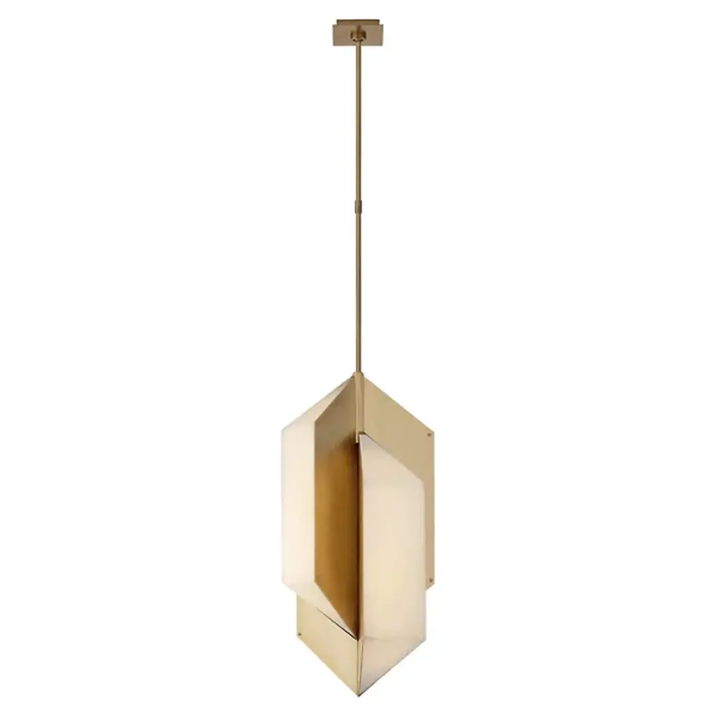 Make any space luxurious with the Ophelion LED Pendant by Visual Comfort. The eye is immediately drawn to the pendant’s sharply angled design. Brass has been shaped into neatly intersecting geometrical pieces for a look that is truly remarkable. The metalwork envelops a shade of alabaster that is home to an integrated LED. This LED projects ambient light throughout your surroundings effortlessly, courtesy of its midair suspension via a ceiling canopy’s attachment to a sturdy downrod.