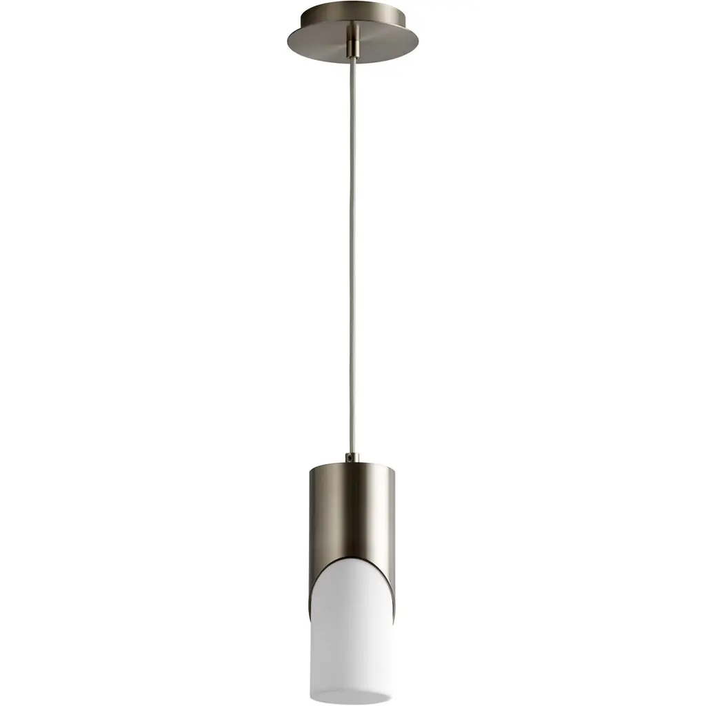 The Opus LED Mini Pendant by Oxygen Lighting offers a contemporary character simple enough to work with minimalist décor. Mounted to the ceiling by a canopy of cold-rolled steel, it drops straight down into a luminescent cylinder made from matte white acrylic material, scattering the evenly diffused glow of integrated LED lamping all around it. The metal surfaces of the aluminum housing contrast with the shorter diffuser, offering a touch of character to such a simple design.
