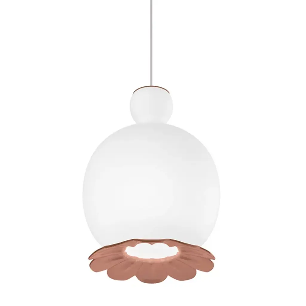 The Opyo Mini Pendant from Kundalini is a pop of charm and sophistication in the room, inspired by the soft features of the poppy seed pod. It’s a piece by Cristina Celestino, a self-described “objects investigator” whose work is based on observation and research. This pendant combines the creator’s curious eye with her approach of blending design with art. The pendant hangs gracefully with a fine cord, leading one’s gaze to the sculptural shade. Each shade is mouthblown by glass masters for rich optics. Even with the lights off, the shade livens up the room with its plump shape and accenting petals at the base. The globe shade transforms into a surface of clean, diffused light. The lights radiate out to create a rich ambient glow, accenting downlight and a memorable silhouette.