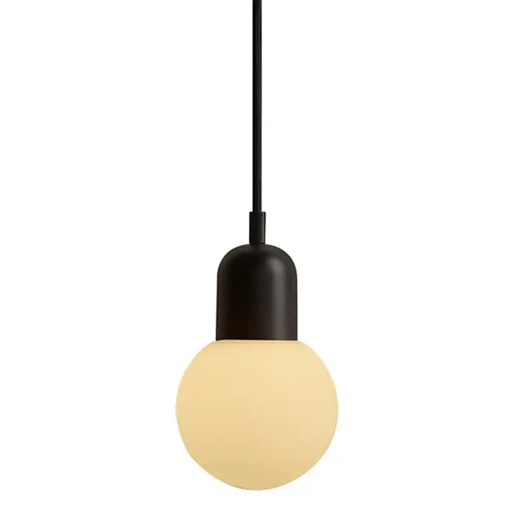 The Orb Outdoor Pendant from In Common With is a refreshing take on traditional lighting with its smooth spherical diffuse embodying a daring minimalist charm. Each pendant is a unique combination of hand-blown glass diffusers and a domed metal cap, available in a range of colors to create an eye-catching contrast. Rooted in timeless design principles, they prioritize simplicity and utility over passing trends, ensuring enduring appeal in any environment. With its damp-listed build and expressive aesthetics, this pendant seamlessly merges Contemporary refinement with vintage-inspired Artisanal Modern craftsmanship, making it a truly remarkable addition to any outdoor setting.